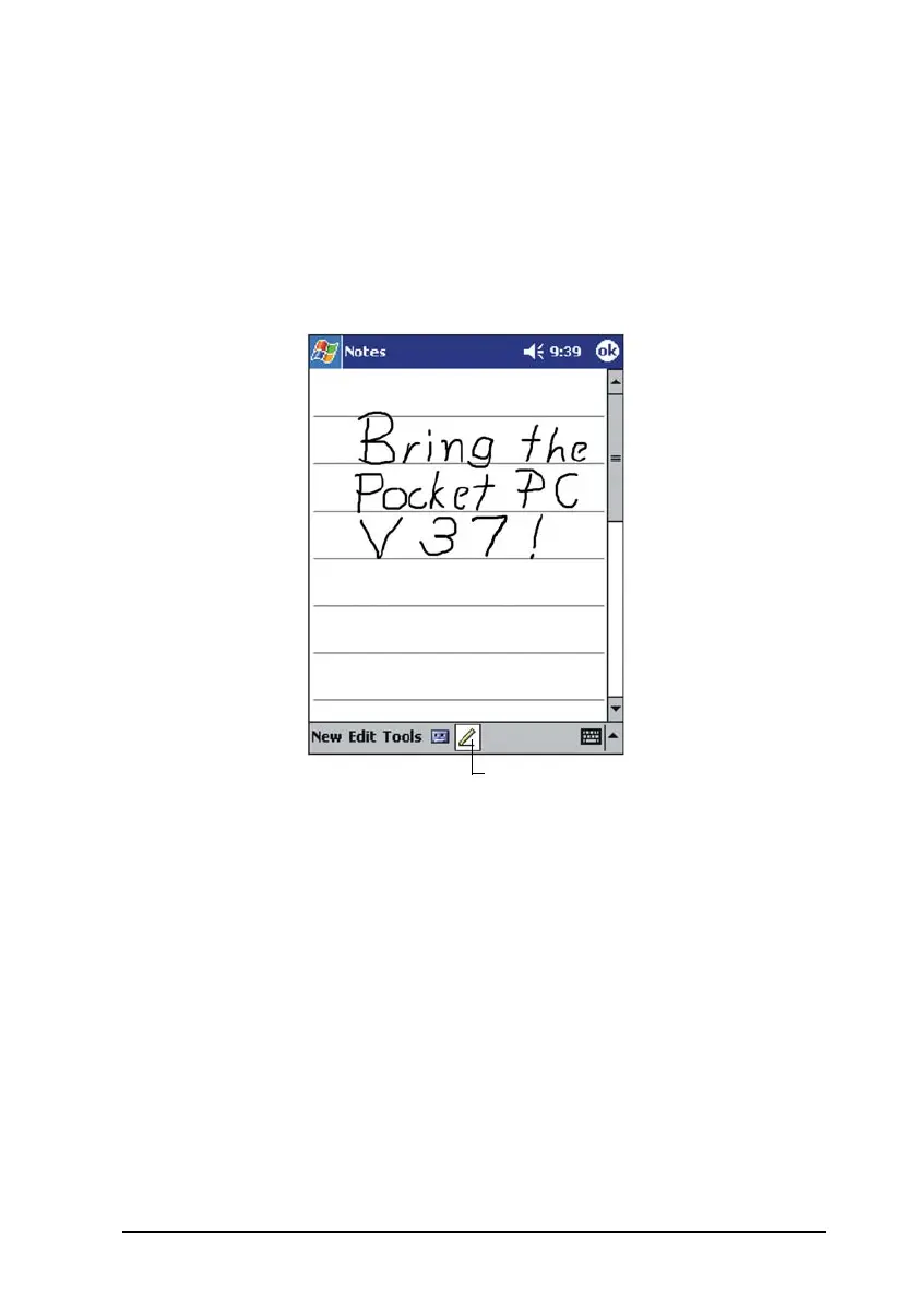 mode. This action displays lines on the screen to help you write.