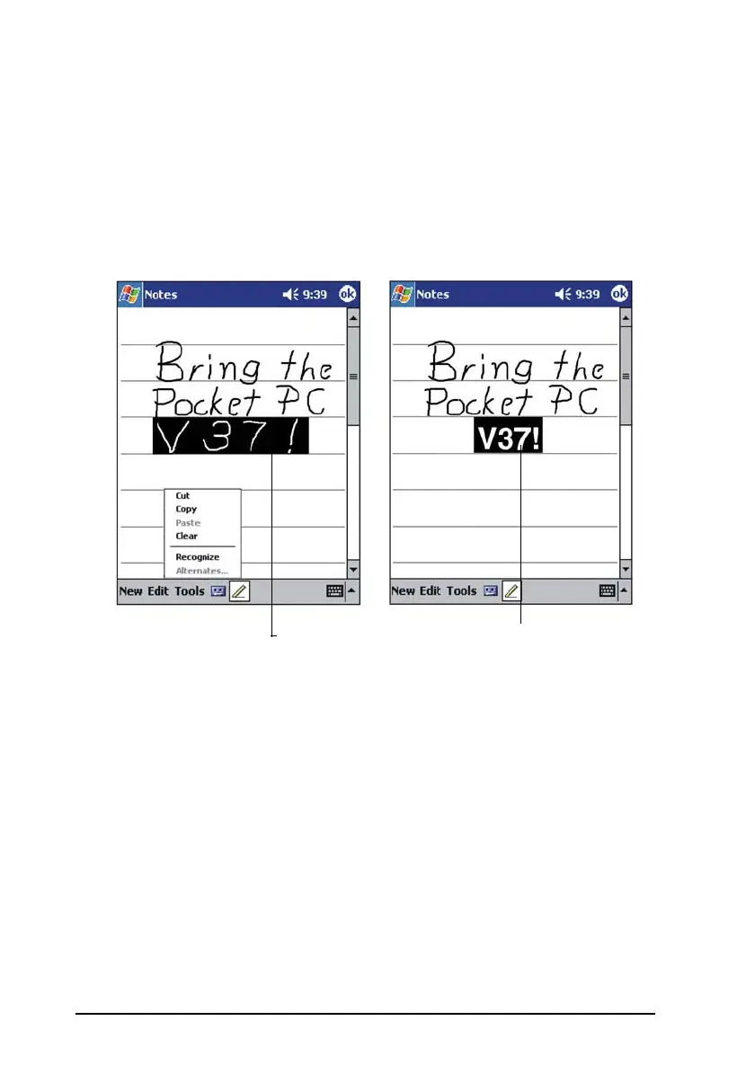 tap Recognize on the pop-up menu). If a word is not recognized, it is left as