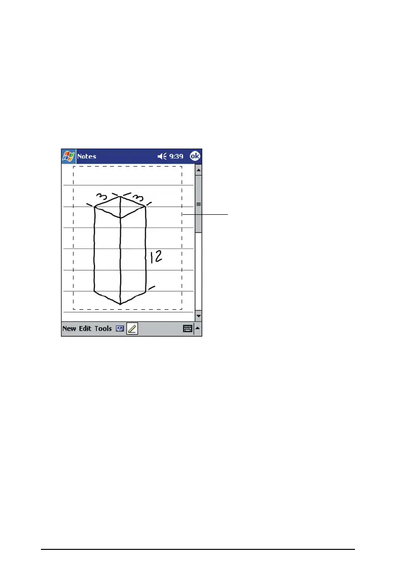 To select a drawing, press and hold the stylus on the drawing until the selection