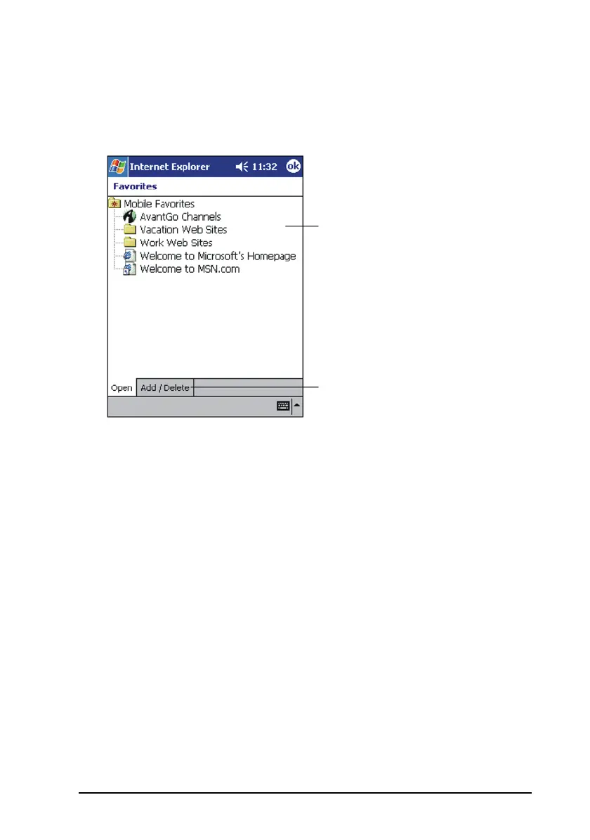 Tap t h e Favorites button to display your list of favorites.
