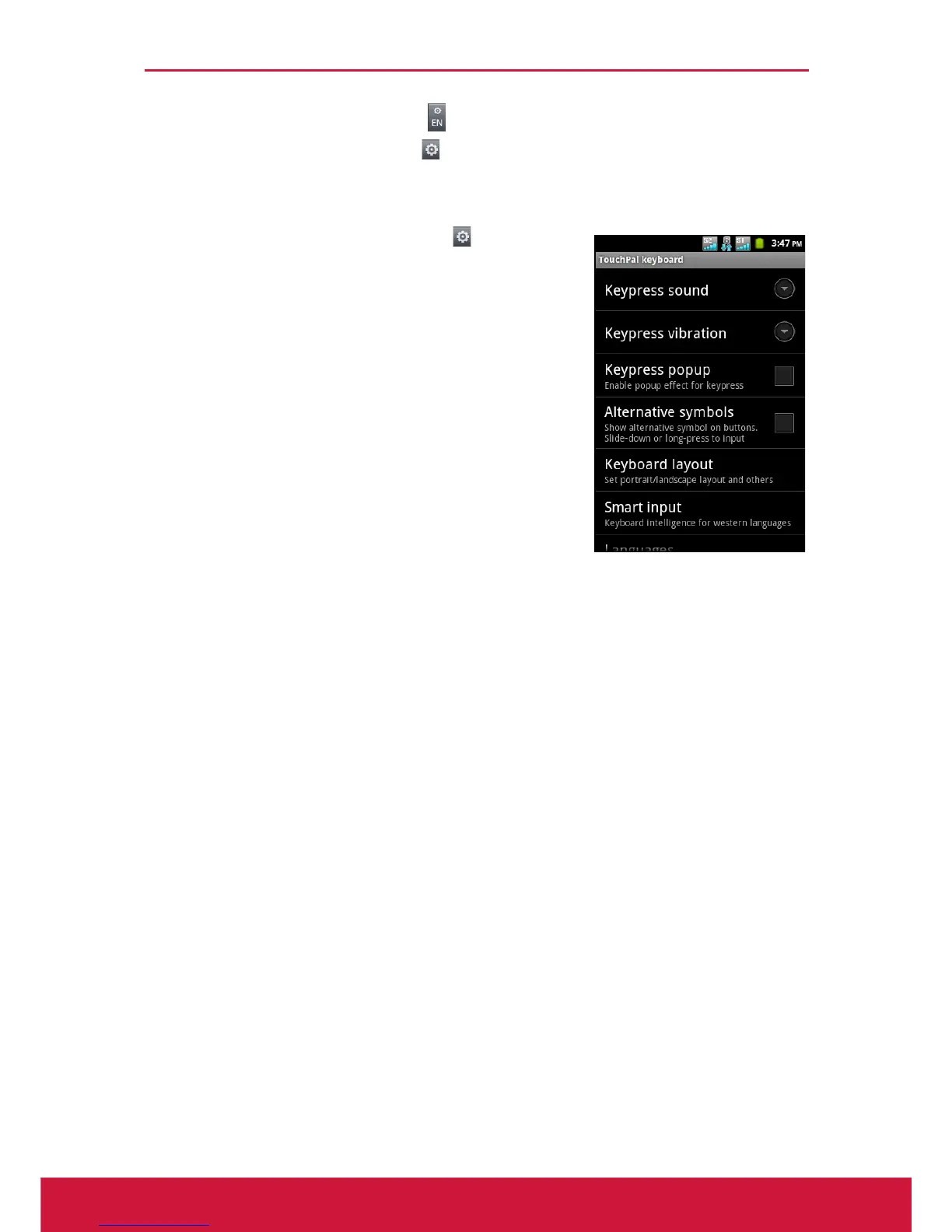 • Chinese Input: Select to set the keyboard settings for Chinese input.
