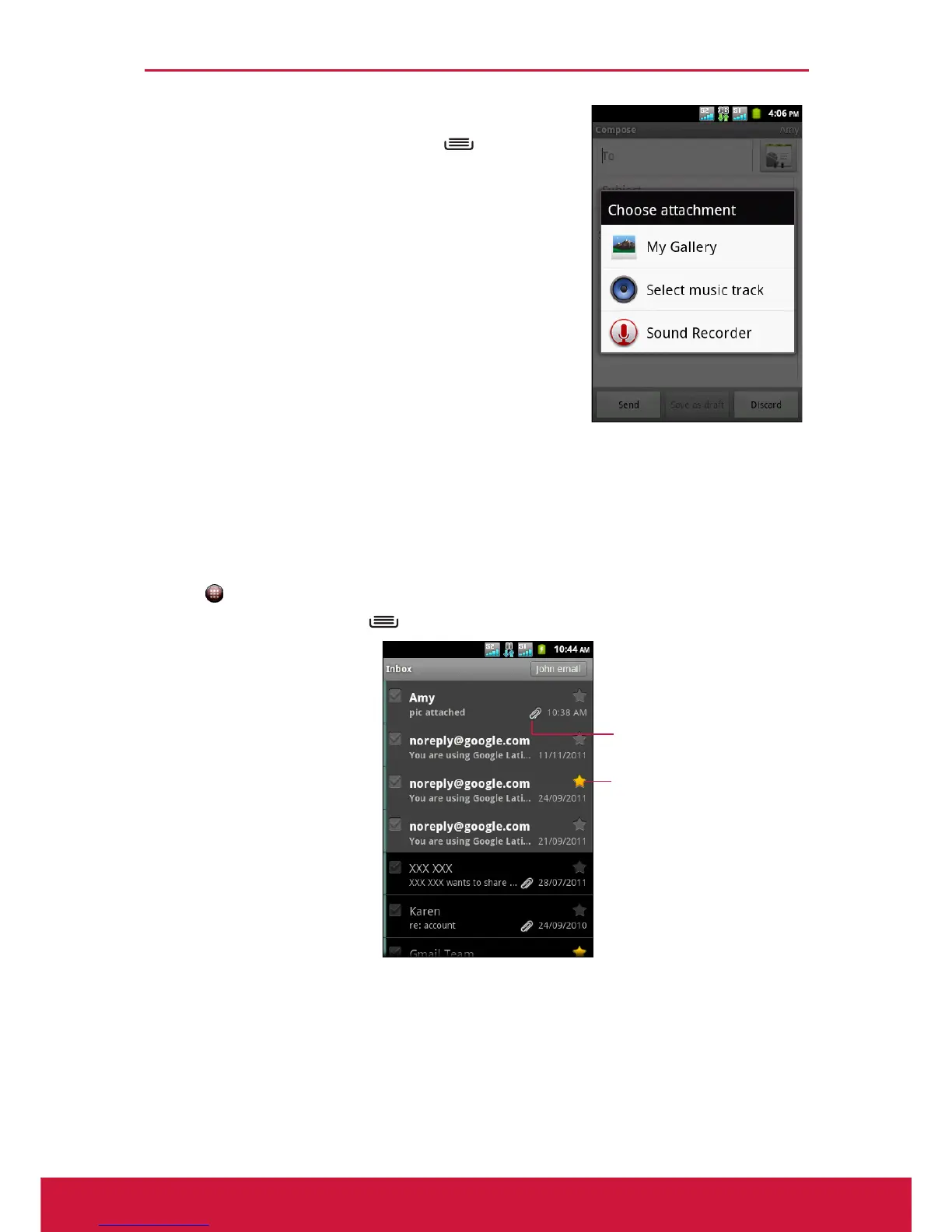 Emails are automatically received in the Inbox folder when the device connects to a