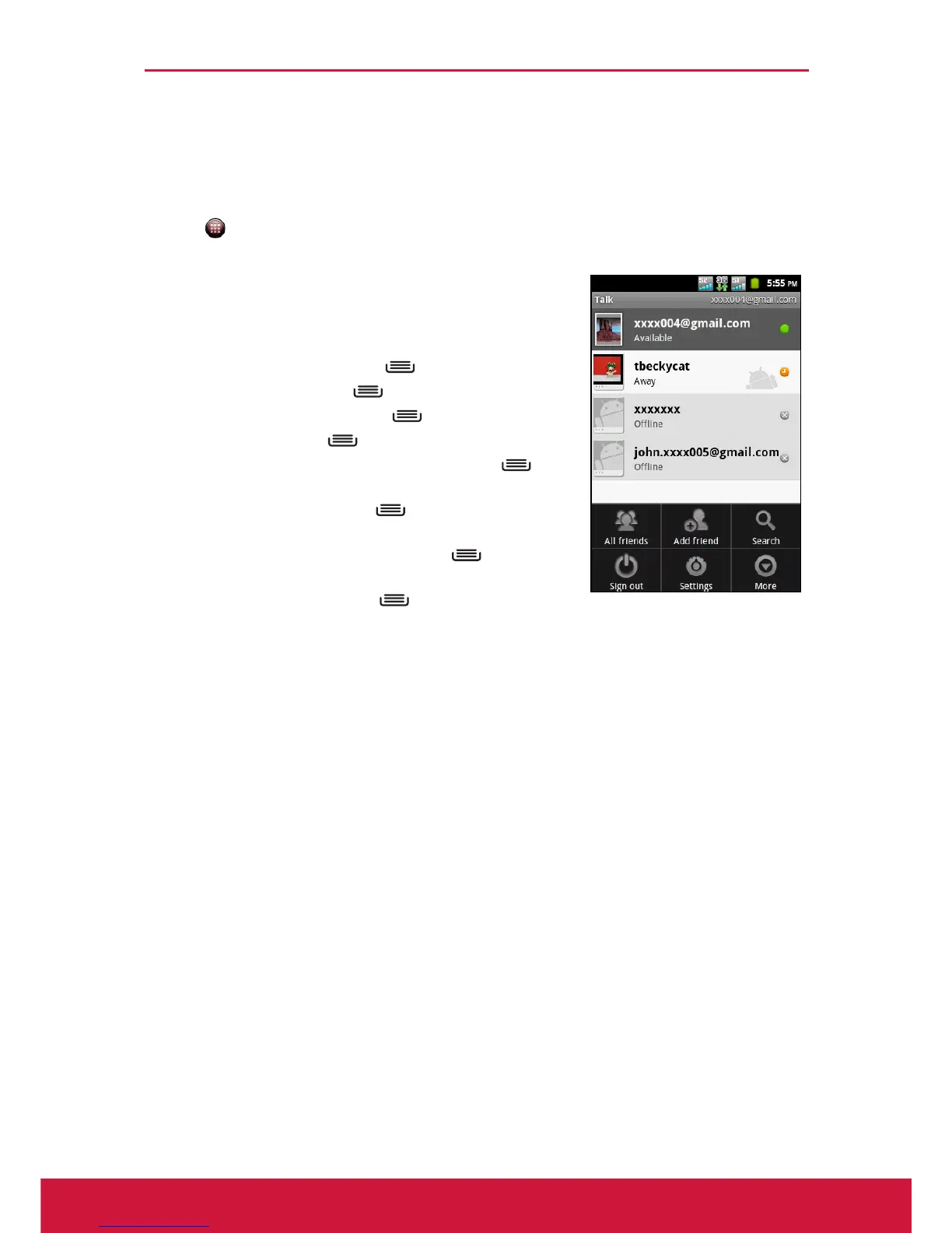 • To configure Google Talk settings, tap >
