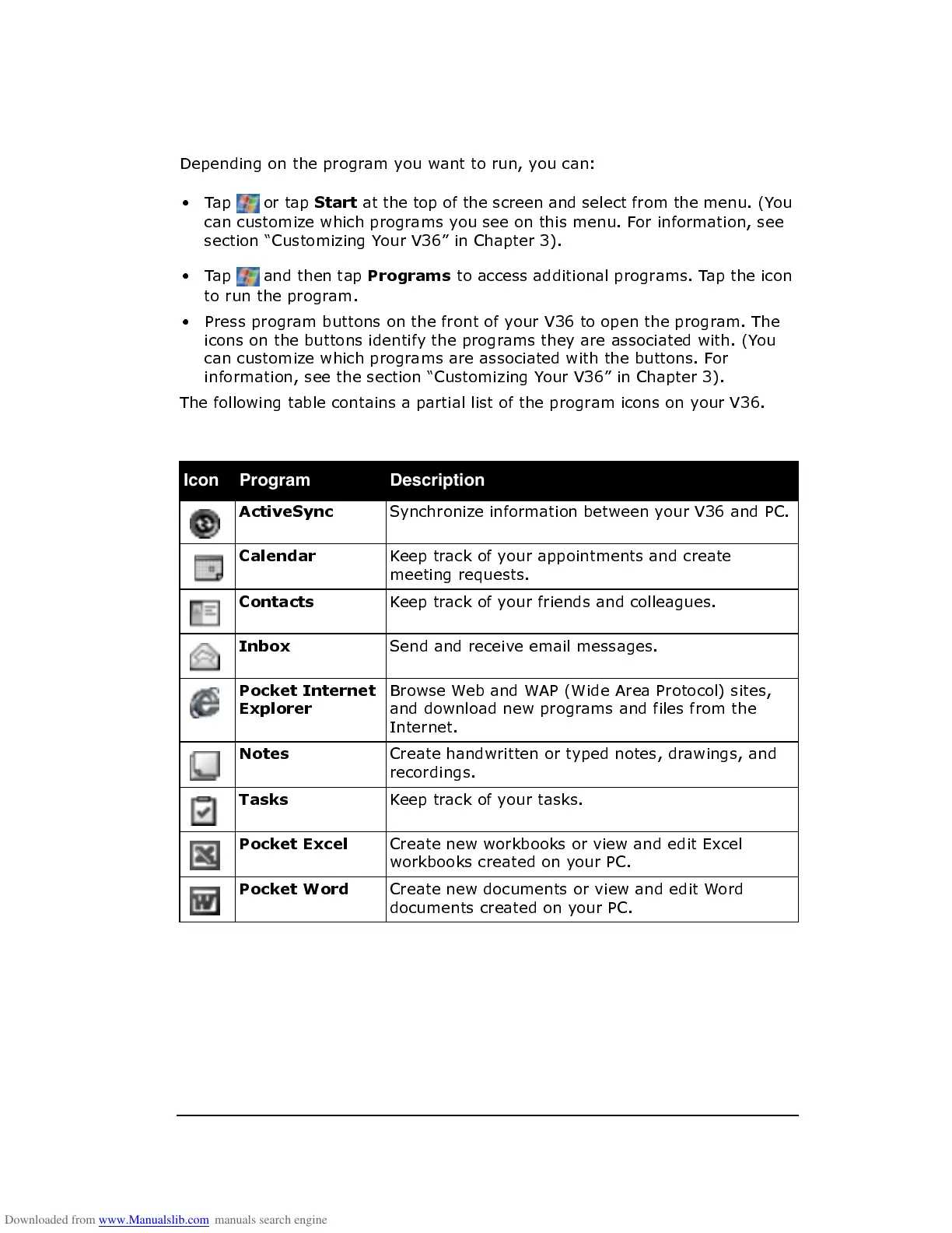 7KHIROORZLQJWDEOHFRQWDLQVDSDUWLDOOLVWRIWKHSURJUDPLFRQVRQ\RXU9