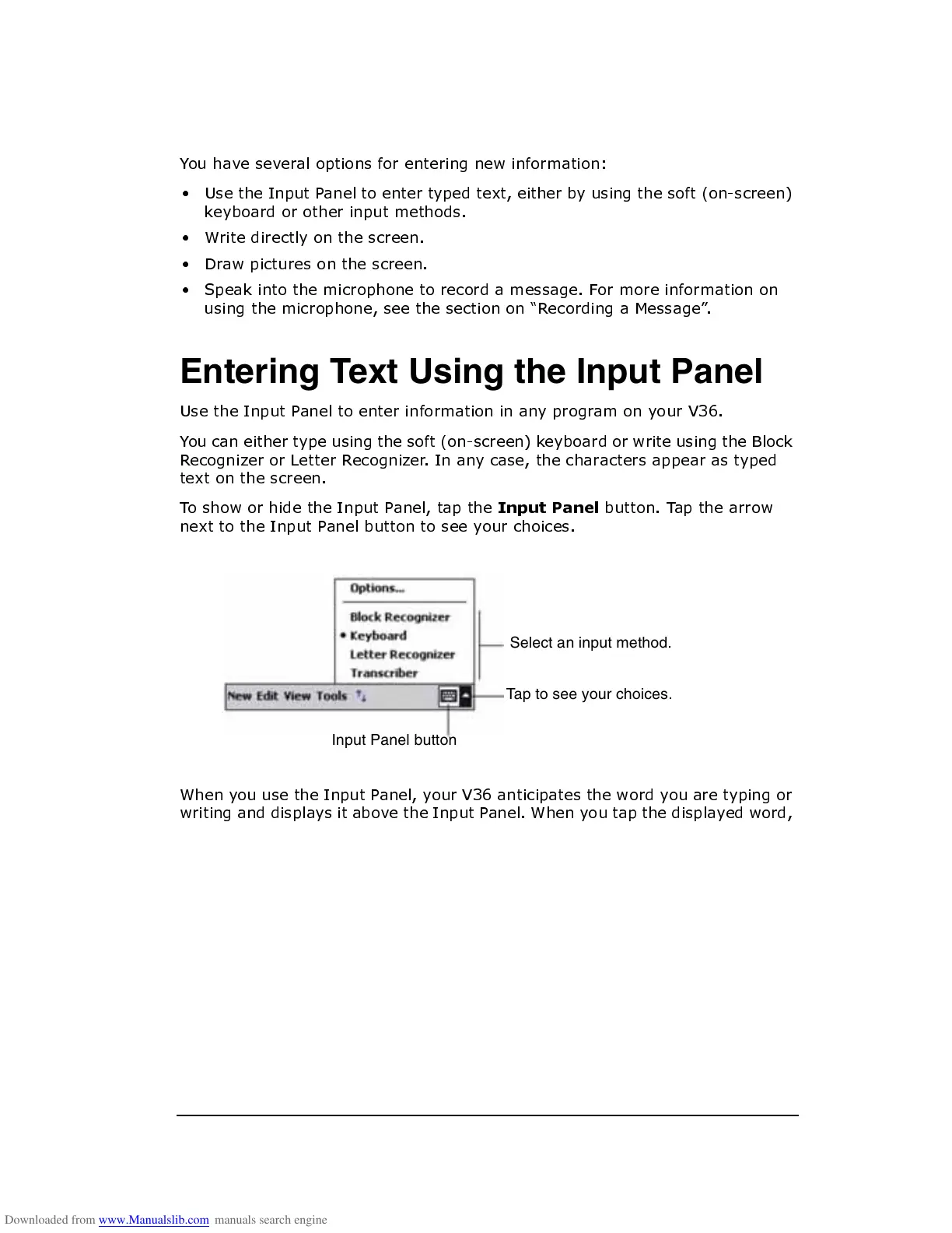 Entering Text Using the Input Panel