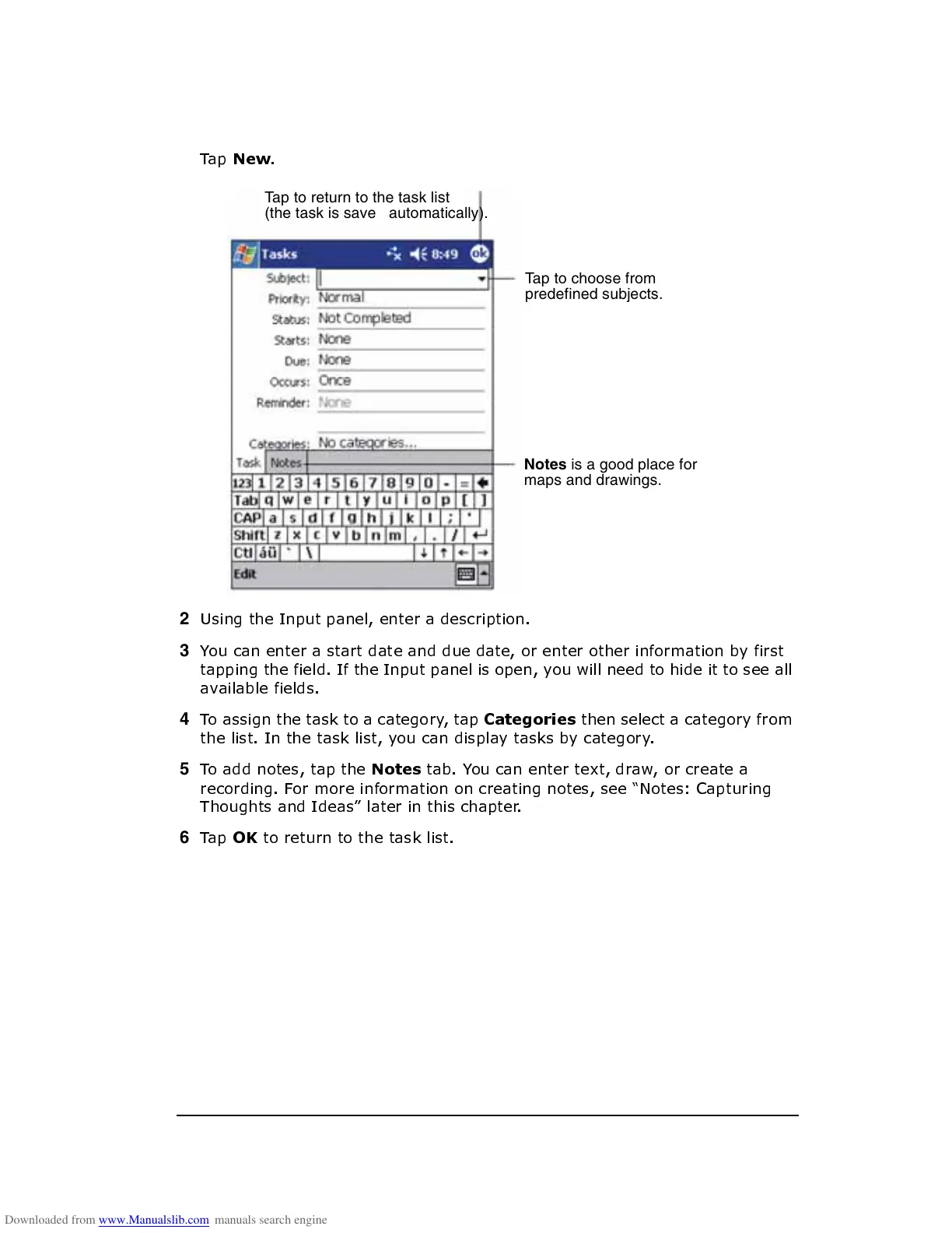 Tap to return to the task list