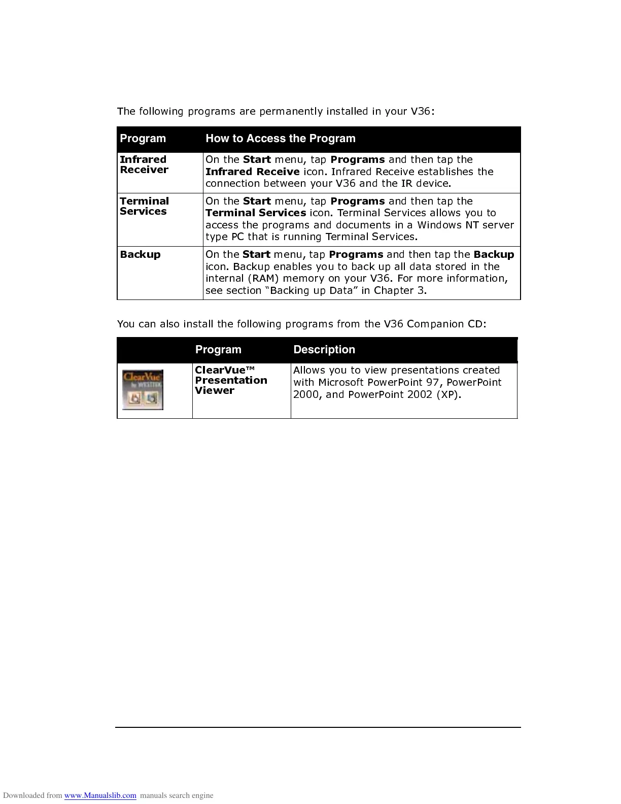 ViewSonic V36 - Other Programs