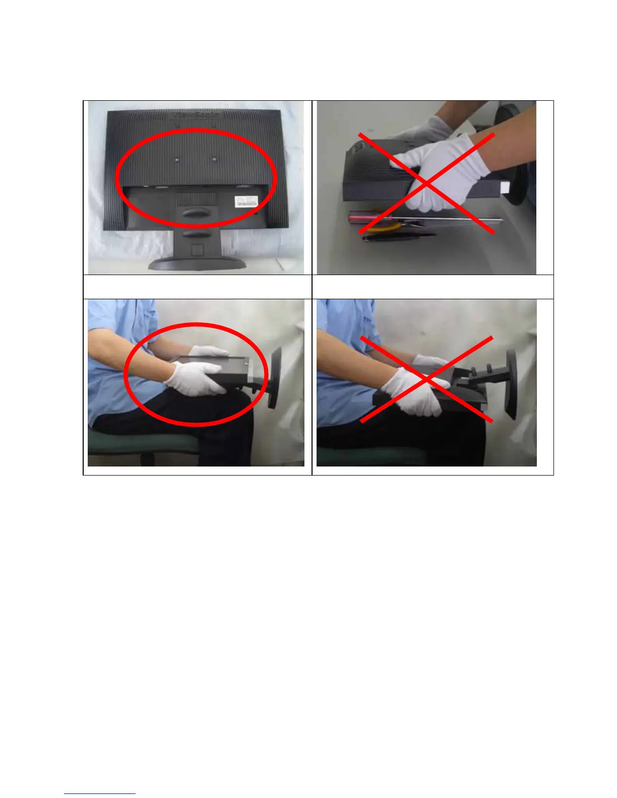 Place the monitor on the lap, the panel surface