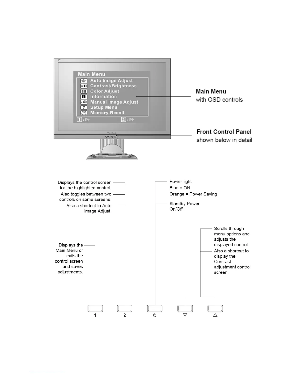 ViewSonic va1616w-8 - Front Panel Controls and OSD Menu; Front Panel Button Functions