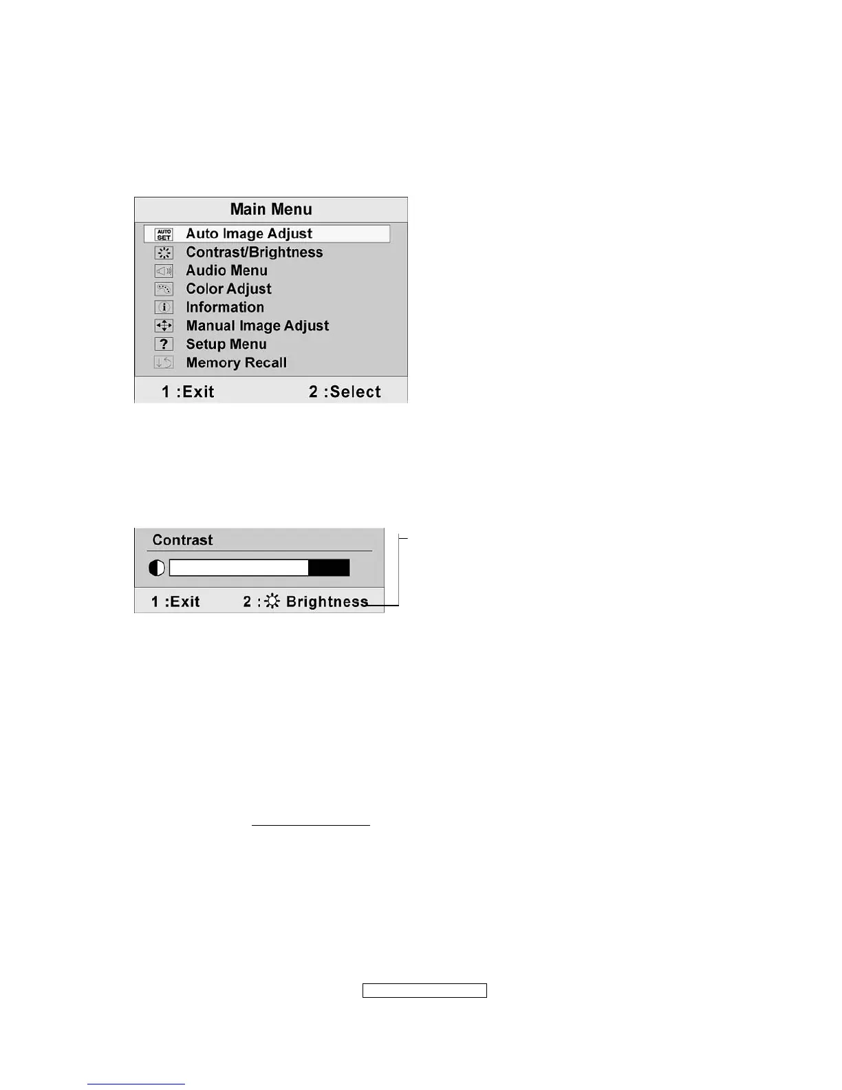 NOTE: All OSD menus and adjustment screens disappear automatically after about 15