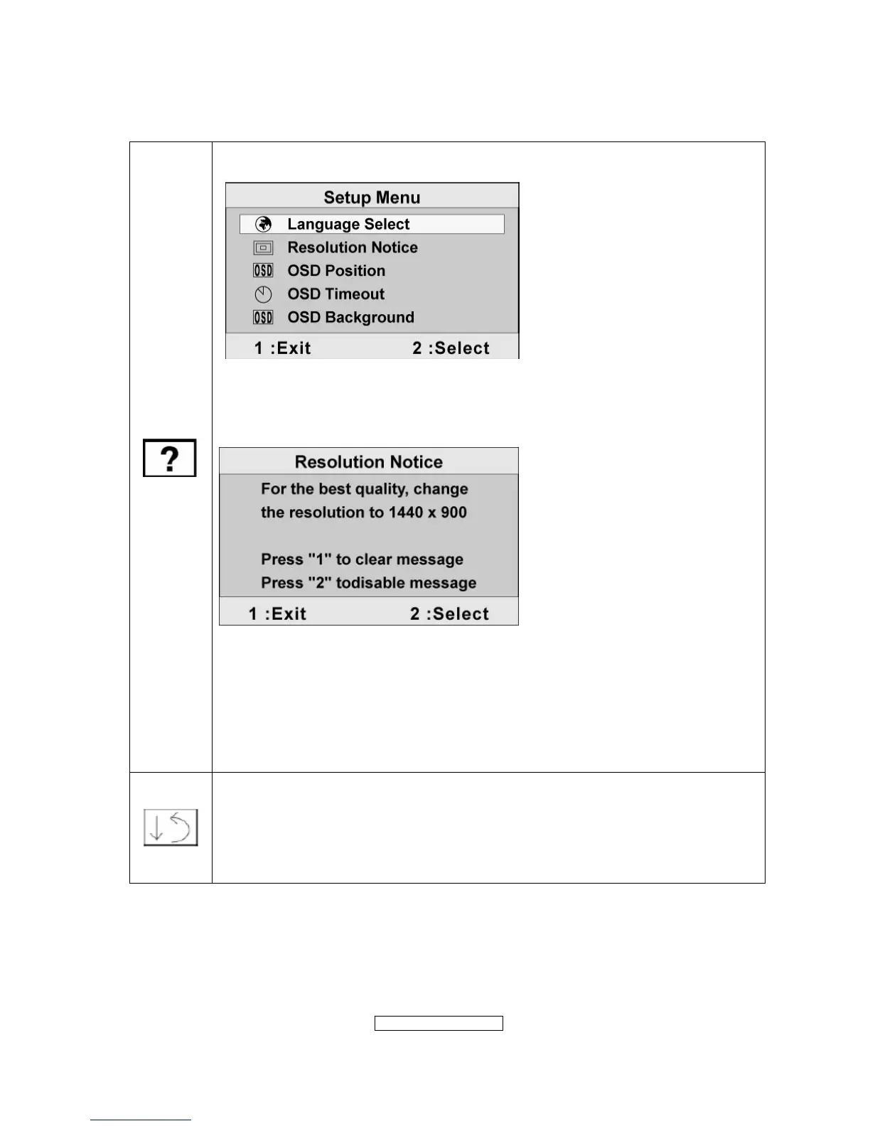 Resolution Notice displays the Resolution Notice menu shown below.