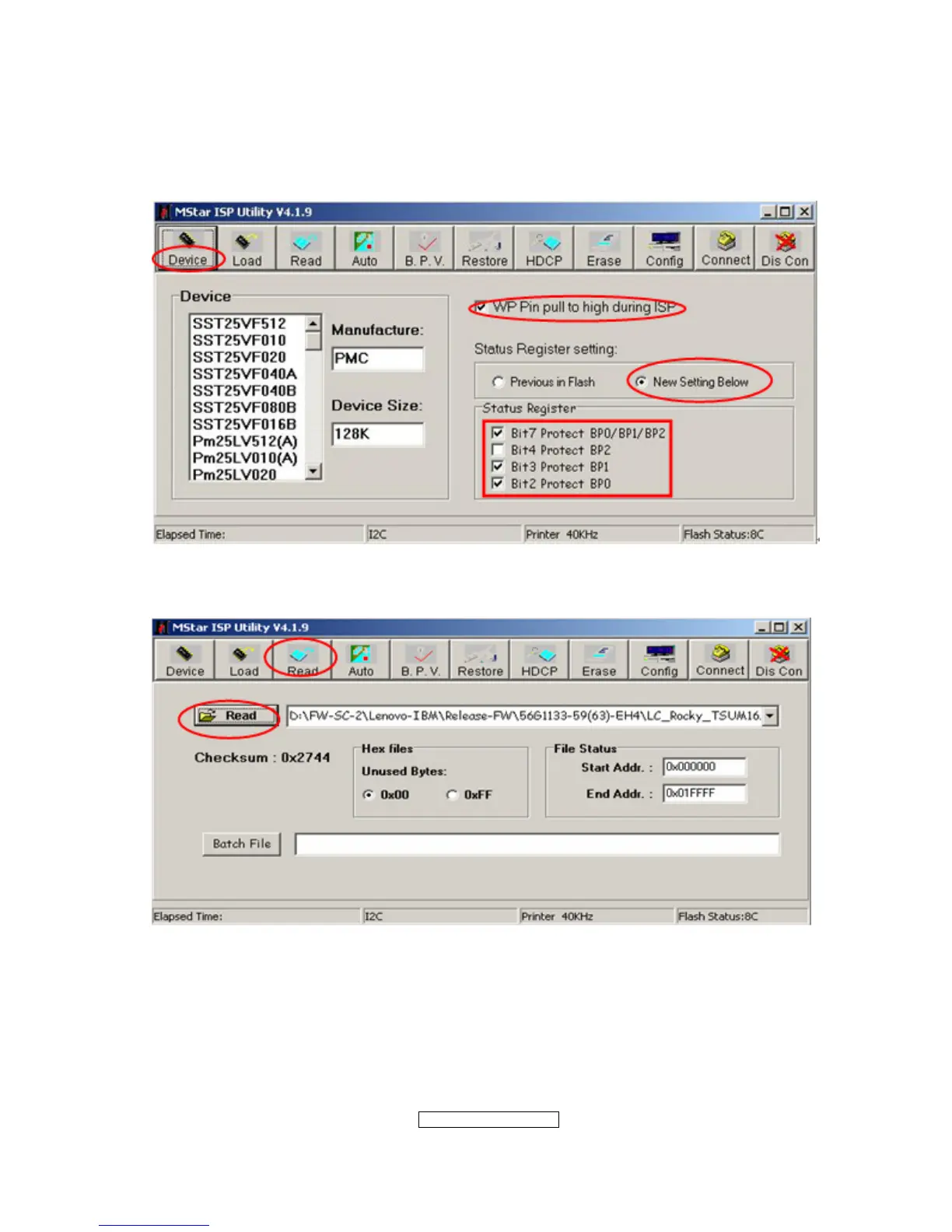 Step 3. Click “Device” button . Make sure that parameters relative to WP# is followed