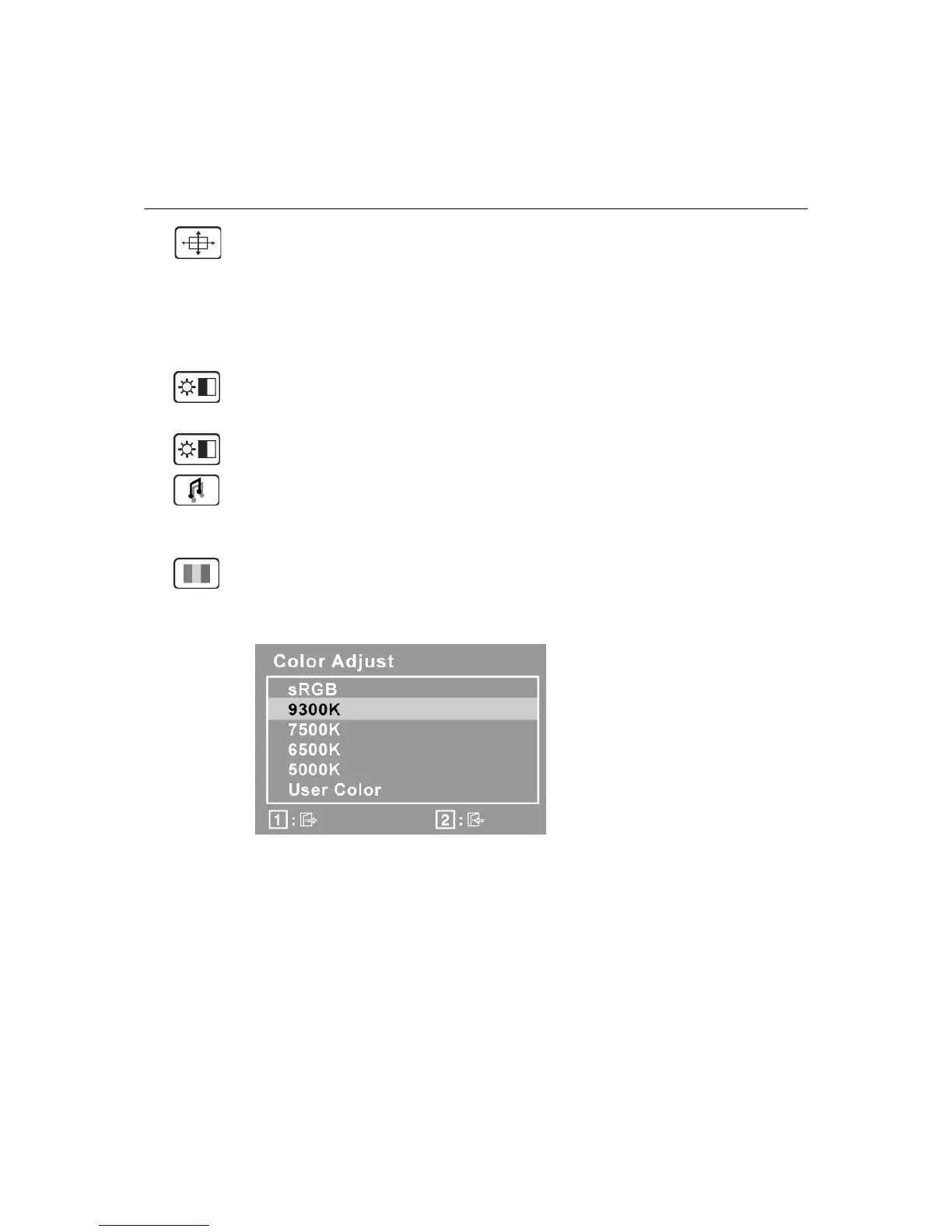 red (R), green (G), and blue (B). The factory setting for this product is 6500K