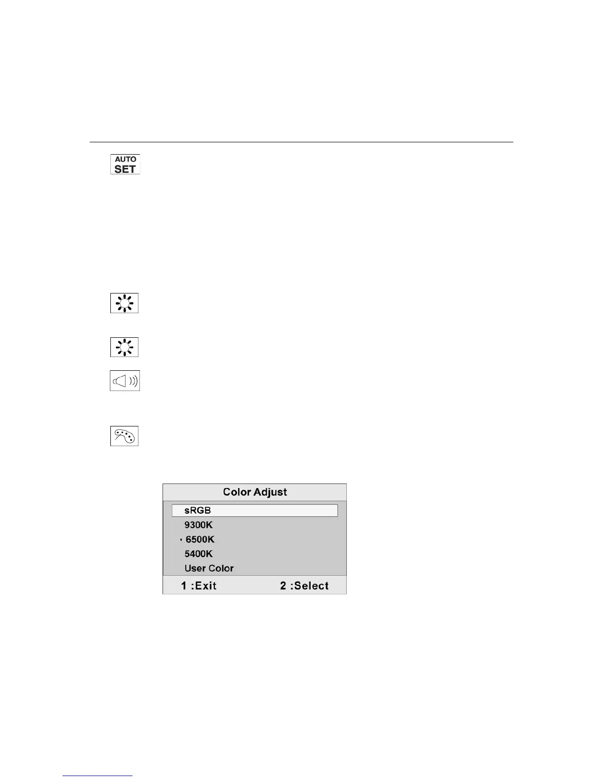 red (R), green (G), and blue (B). The factory setting for this product is 6500K