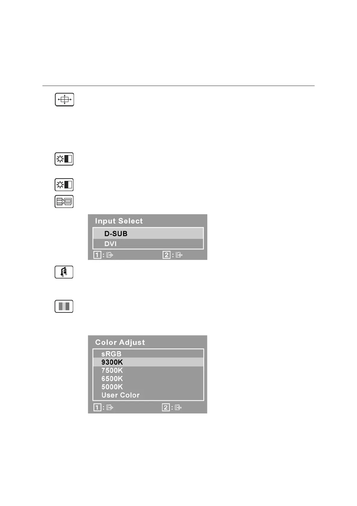 red (R), green (G), and blue (B). The factory setting for this product is 6500K