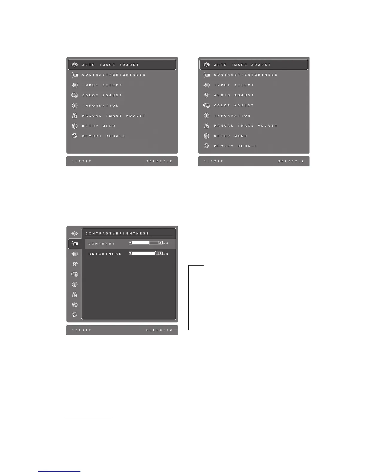 funkcije gumbov 1 in 2: Pritisnite “Exit