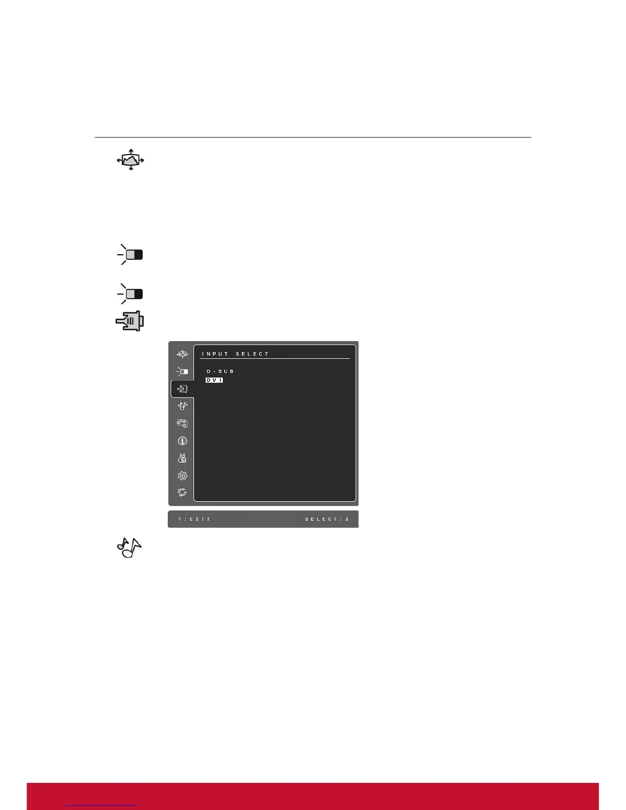 Input Select toggles between inputs if you have more than one computer
