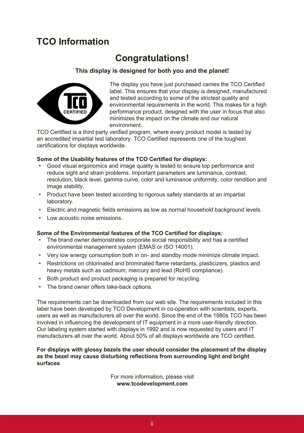 manufacturers all over the world. About 50% of all displays worldwide are TCO certified.