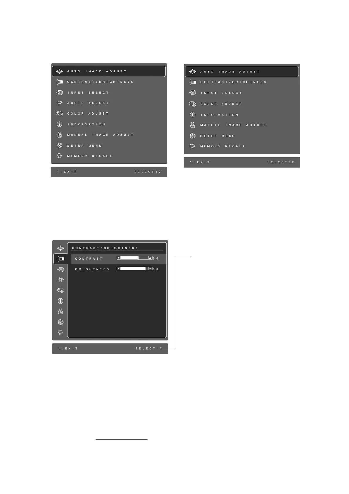 NOTE: All OSD menus and adjustment screens disappear automatically after about 15