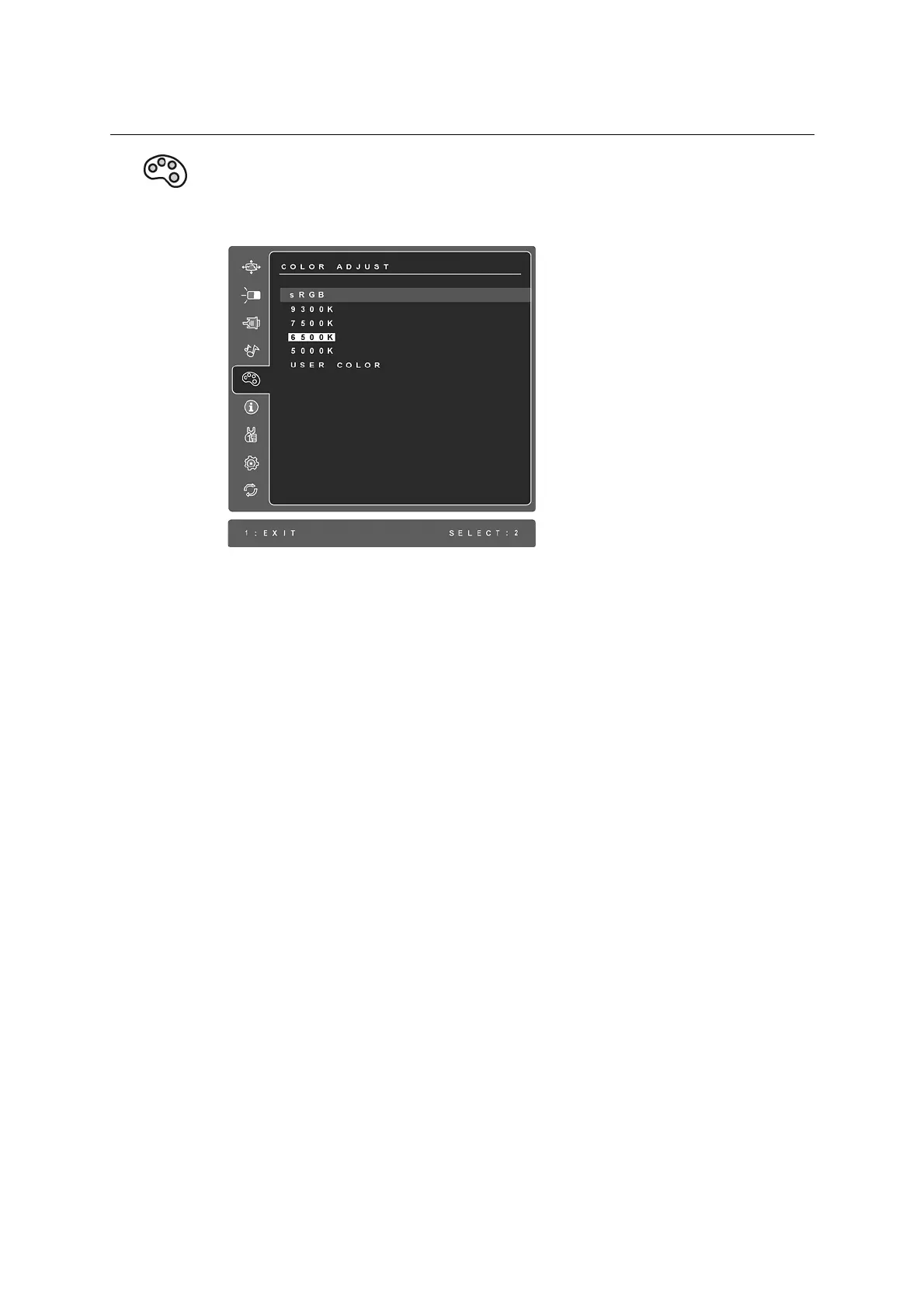 red (R), green (G), and blue (B). The factory setting for this product is 6500K