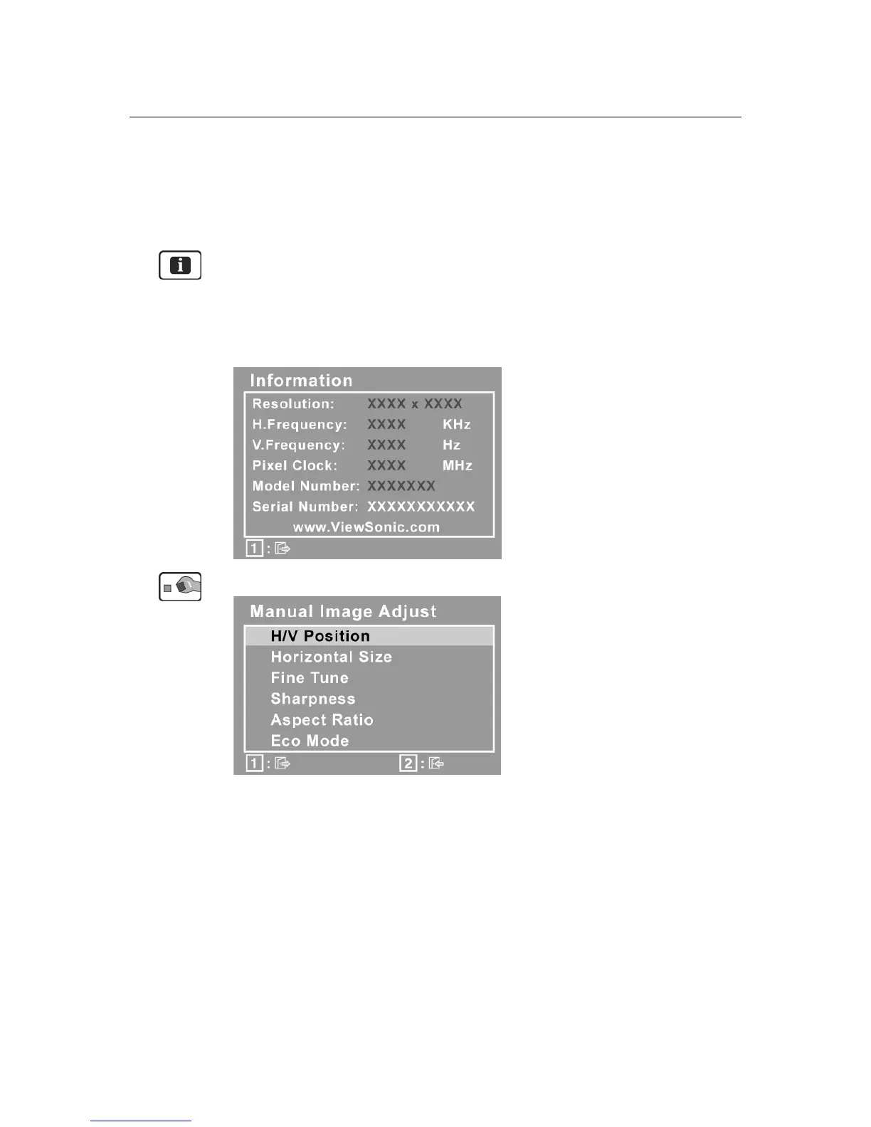 H./V. Position (Horizontal/Vertical Position) moves the screen image left or