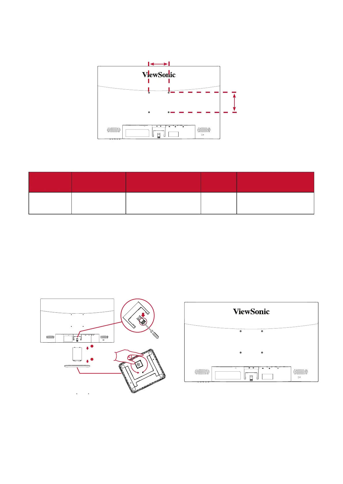4. Aach the mounng bracket to the VESA mounng holes at the rear of the