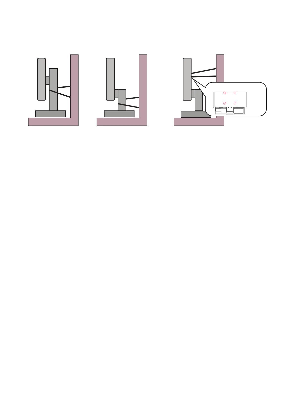 • Fastening the monitor to a wall or fixed object using cordage or other restraining
