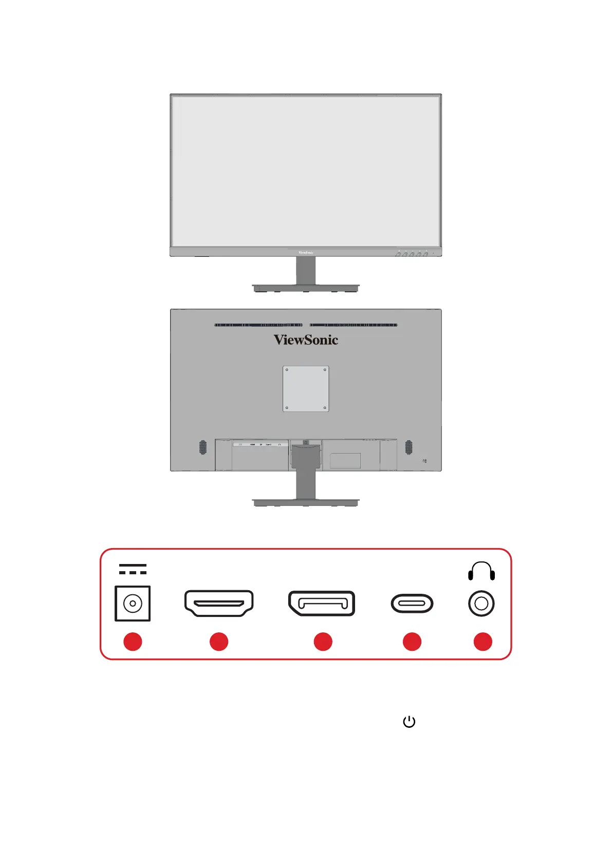 1. DC IN 2. HDMI 3. DisplayPort 4. USB Type C 5. Audio Out