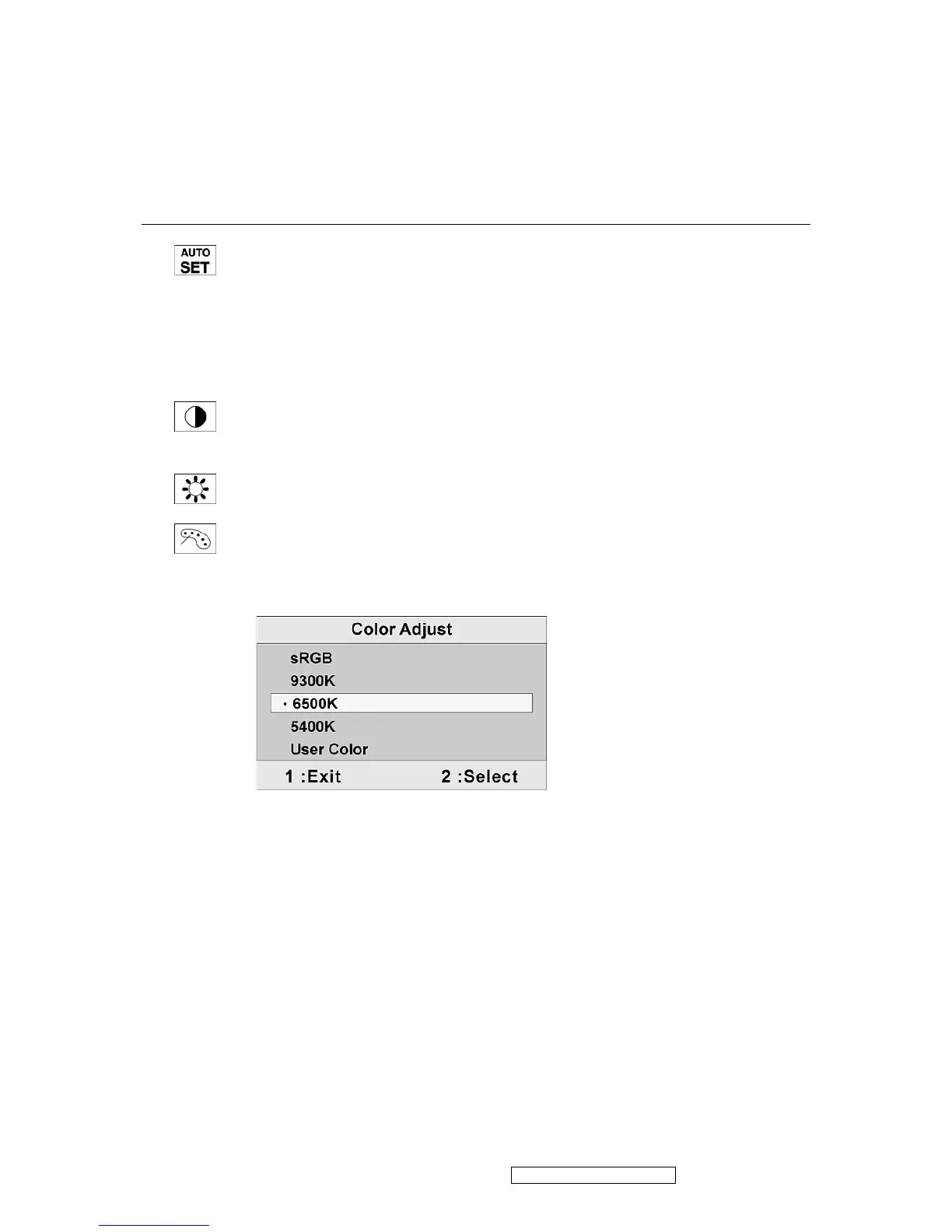 red (R), green (G), and blue (B). The factory setting for this product is 6500K