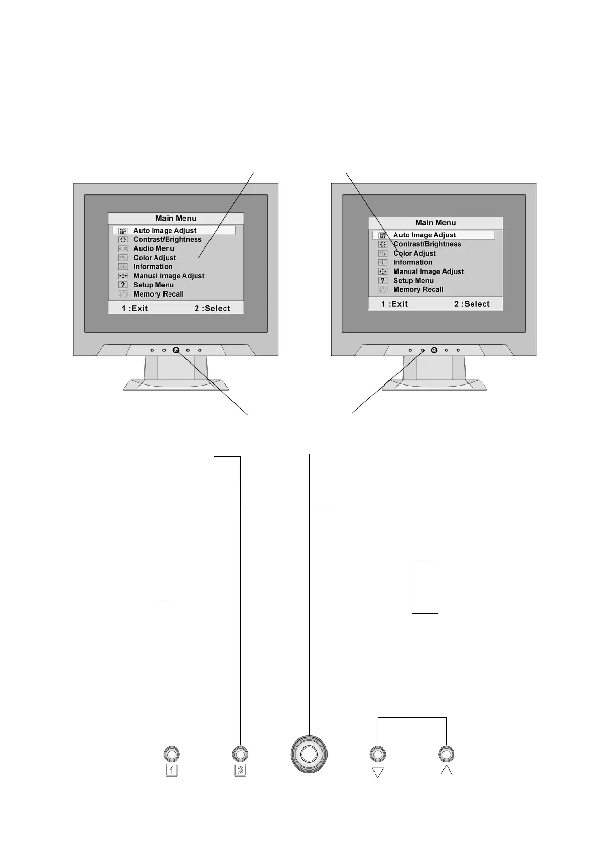 on the screen. The OSD controls are explained at the top of the next page and are defined in
