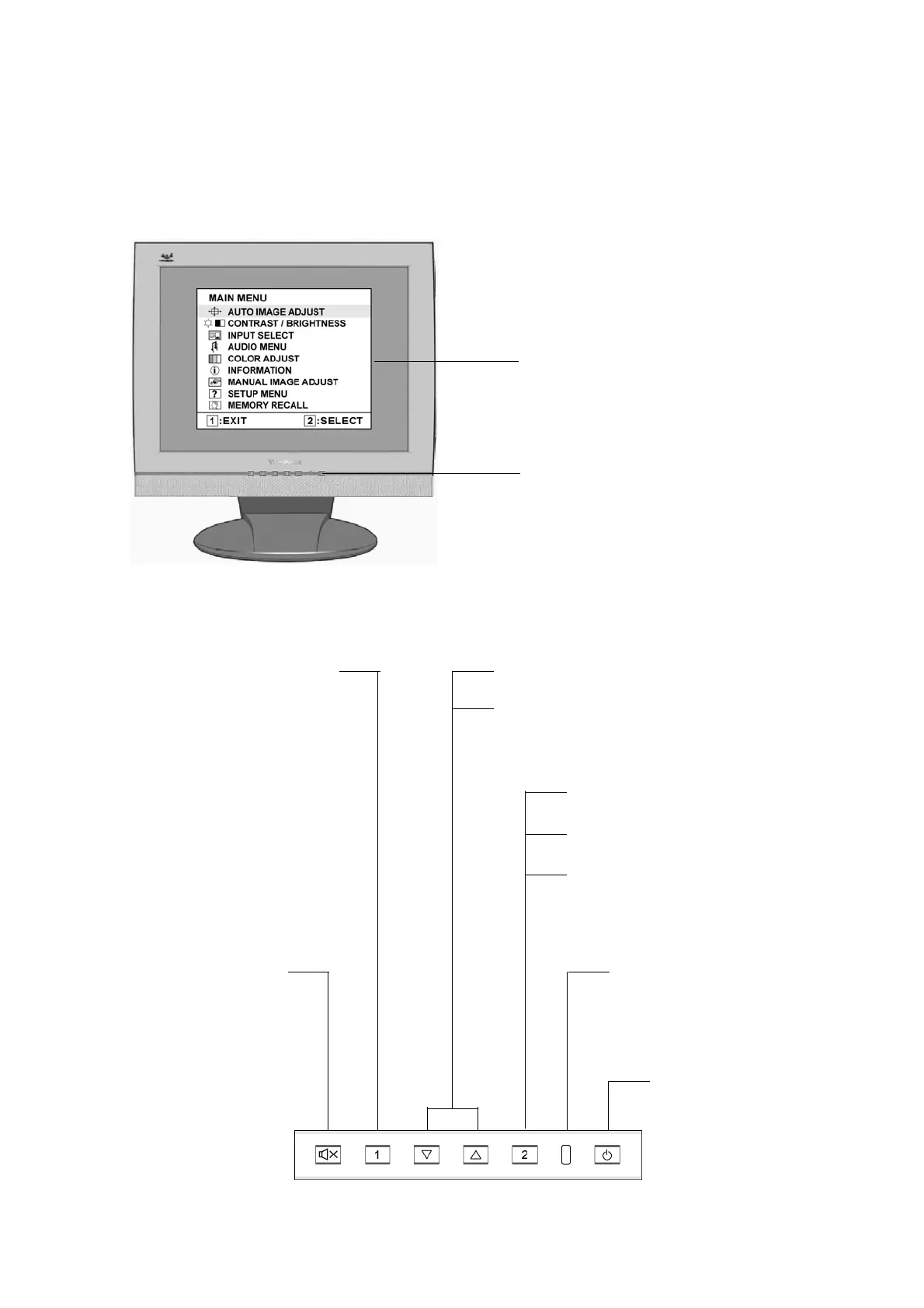 on the screen. The OSD controls are explained at the top of the next page and are defined in