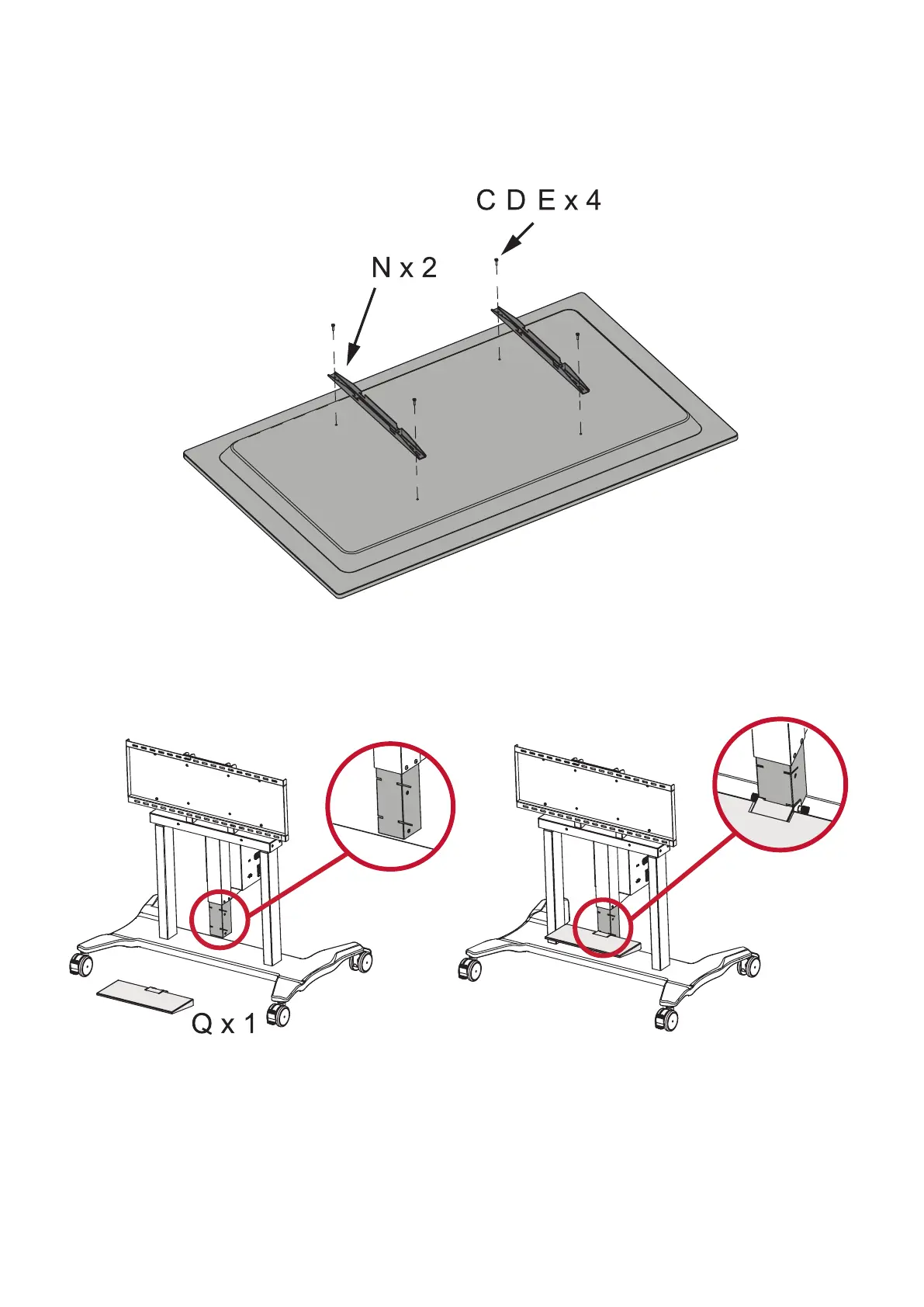 Aach the Keyboard Tray (Q) to the middle support.
