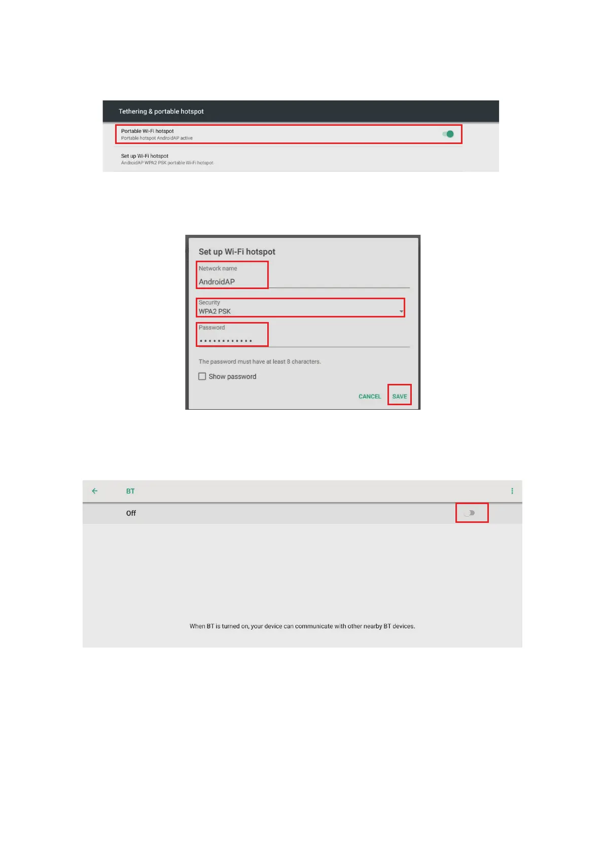 password. Tap Set up Wi-Fi hotspot to change the network name, security type,