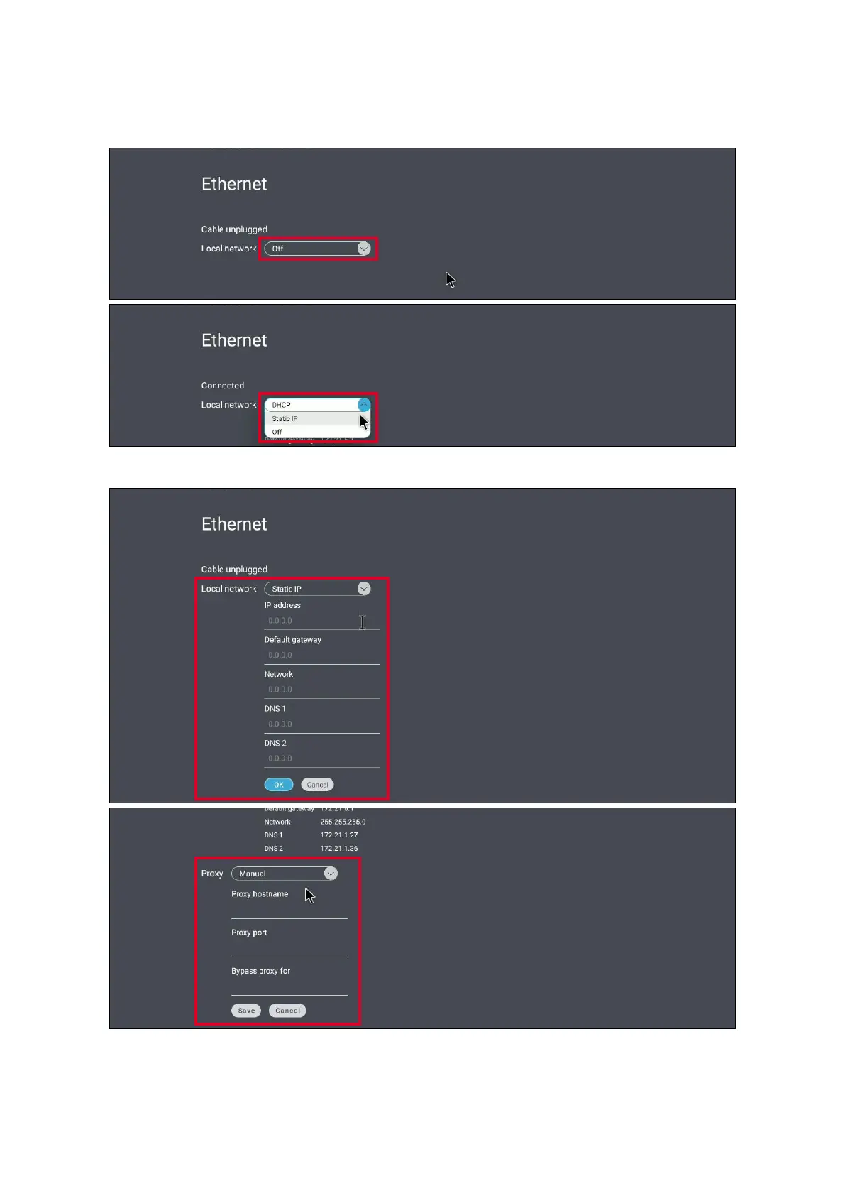 Set the local network and proxy.