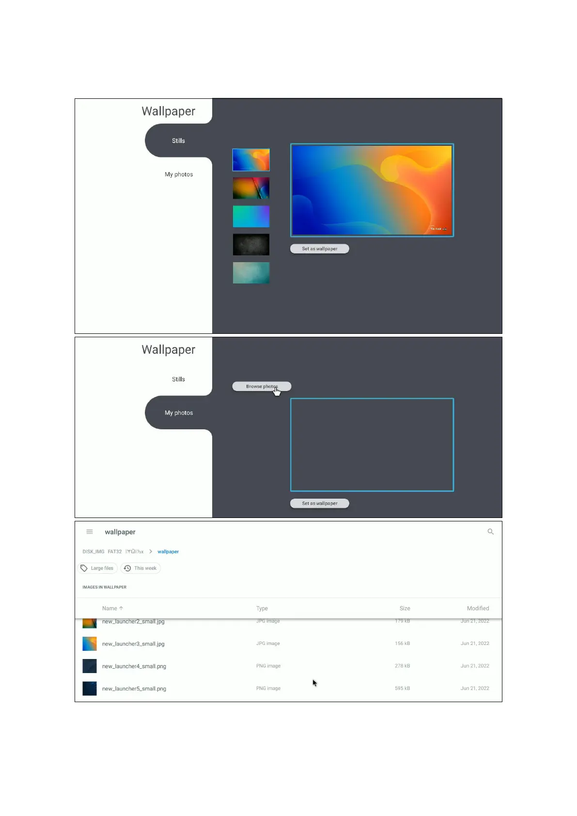 Users can change their wallpaper with default images, or use their own by tapping
