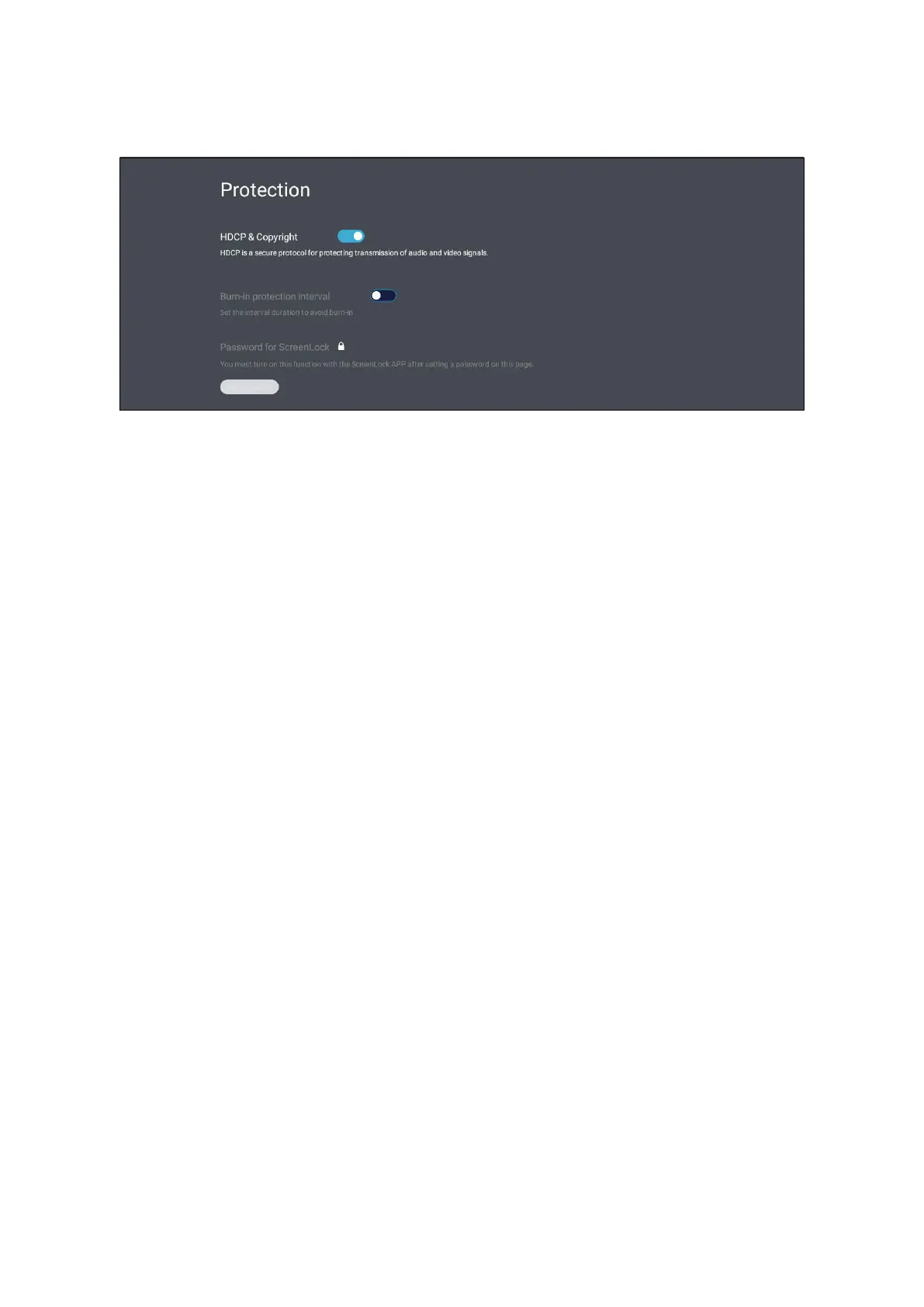 Toggle HDCP & Copyright On or O. HDCP is a secure protocol to protect audio and