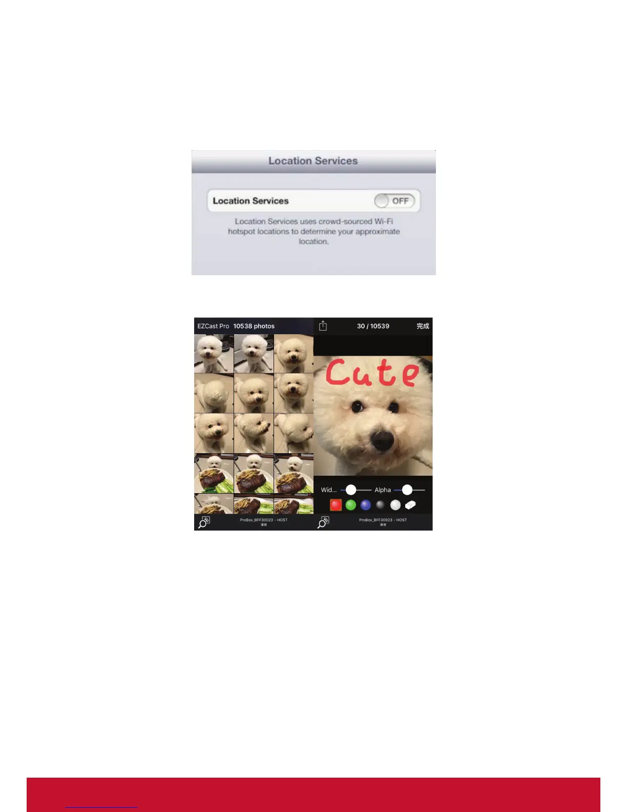 • You will have to allow EZCast Pro to share your camera roll andenable the location