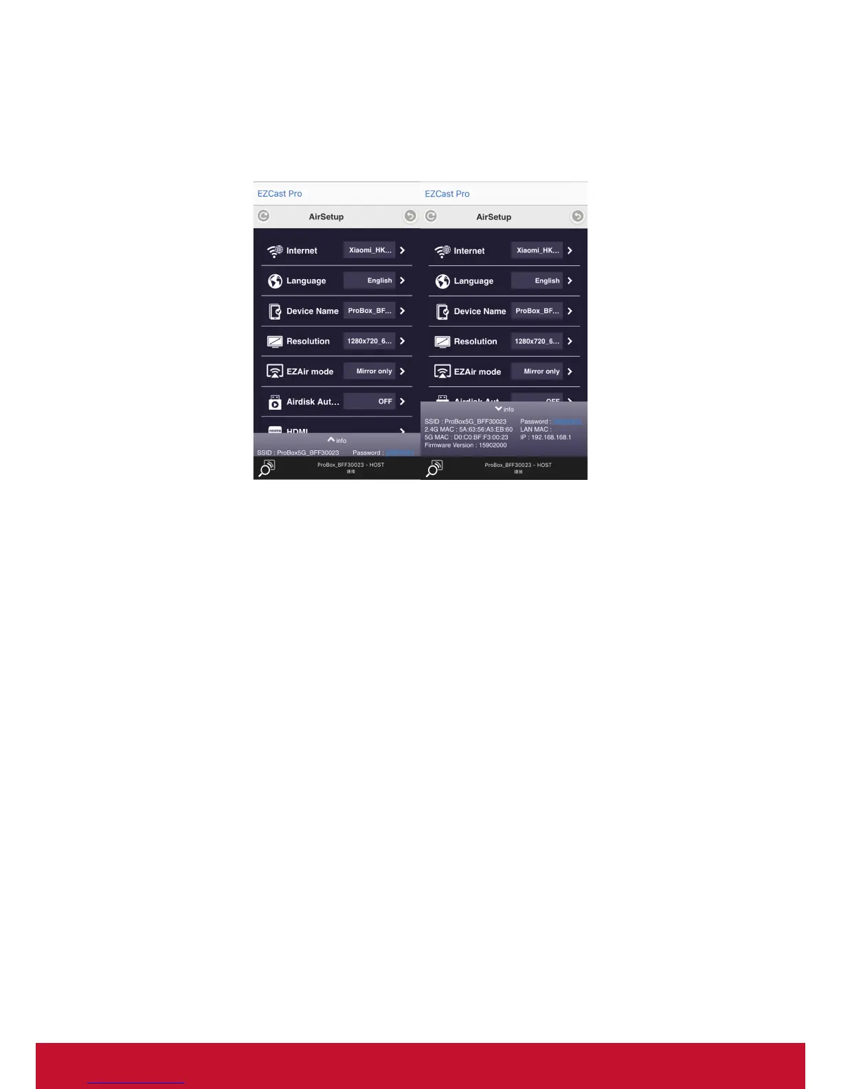 languages, EZAir modes, and turn on/off Airview/Castcode/Miracode…etc.