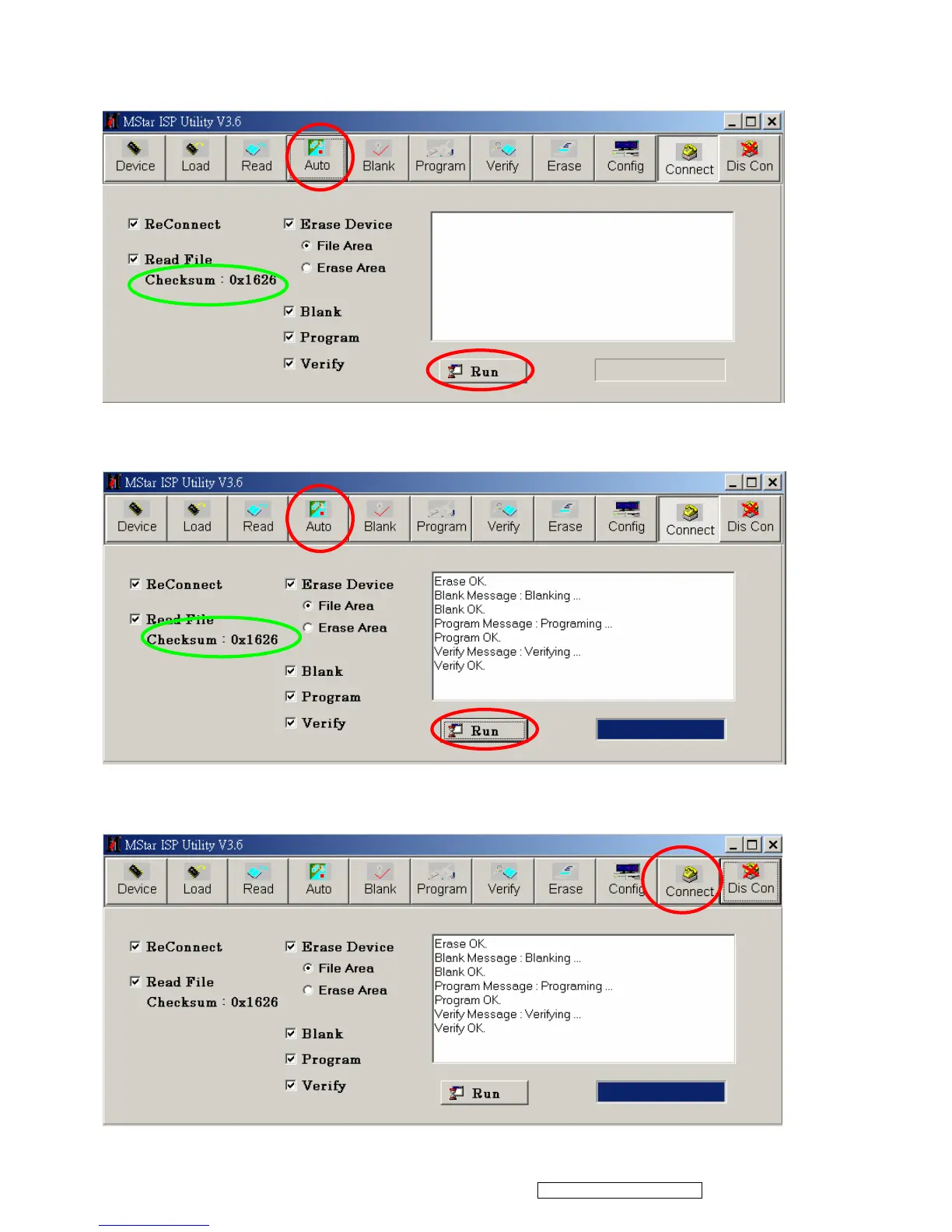 Press ”Auto” into below figure that display the value of BIOS Checksum below figure is displayed “0x1626” then press ”Run”