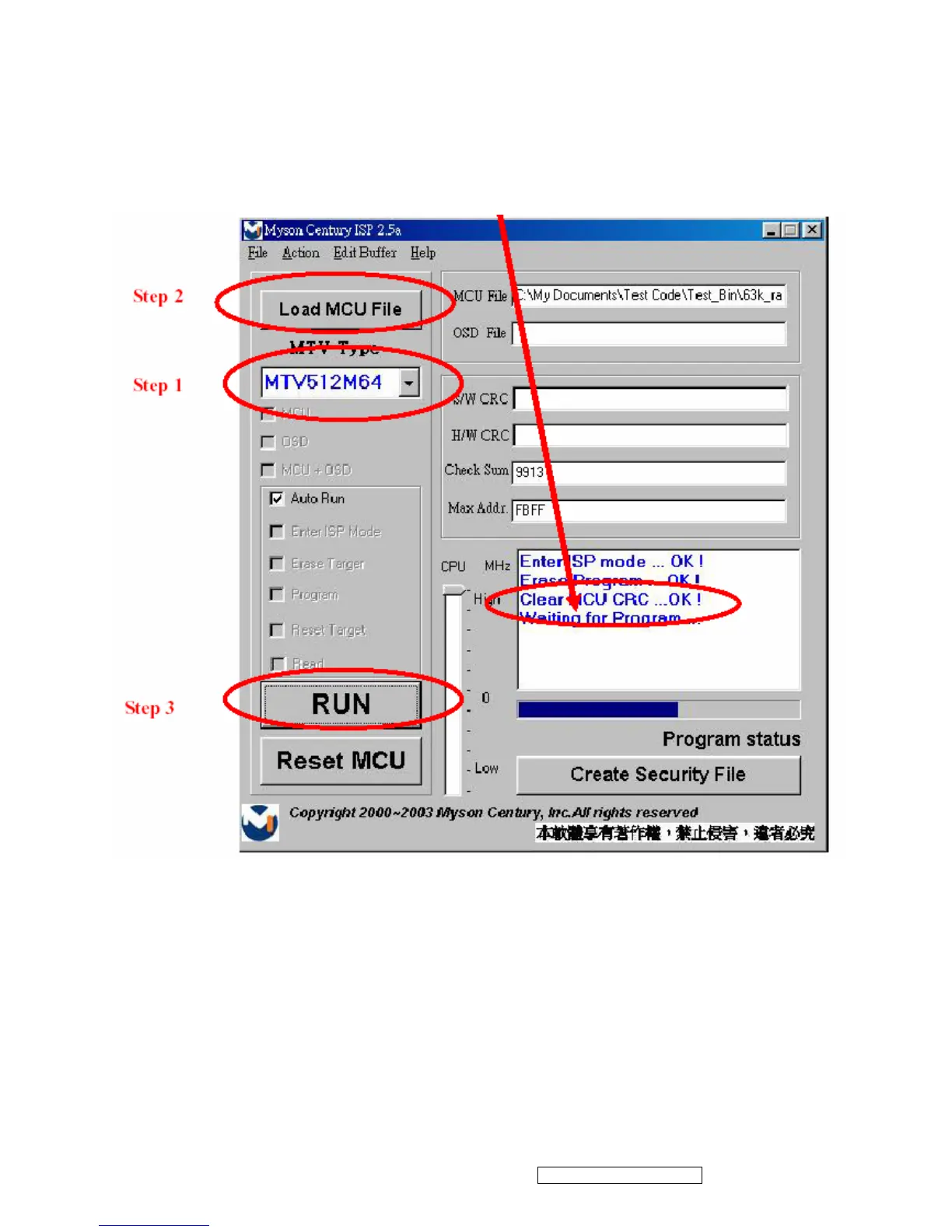 4.1 Select MTV type first, load the binary or Intel hex file that you want to program into the MCU, and select “Auto"