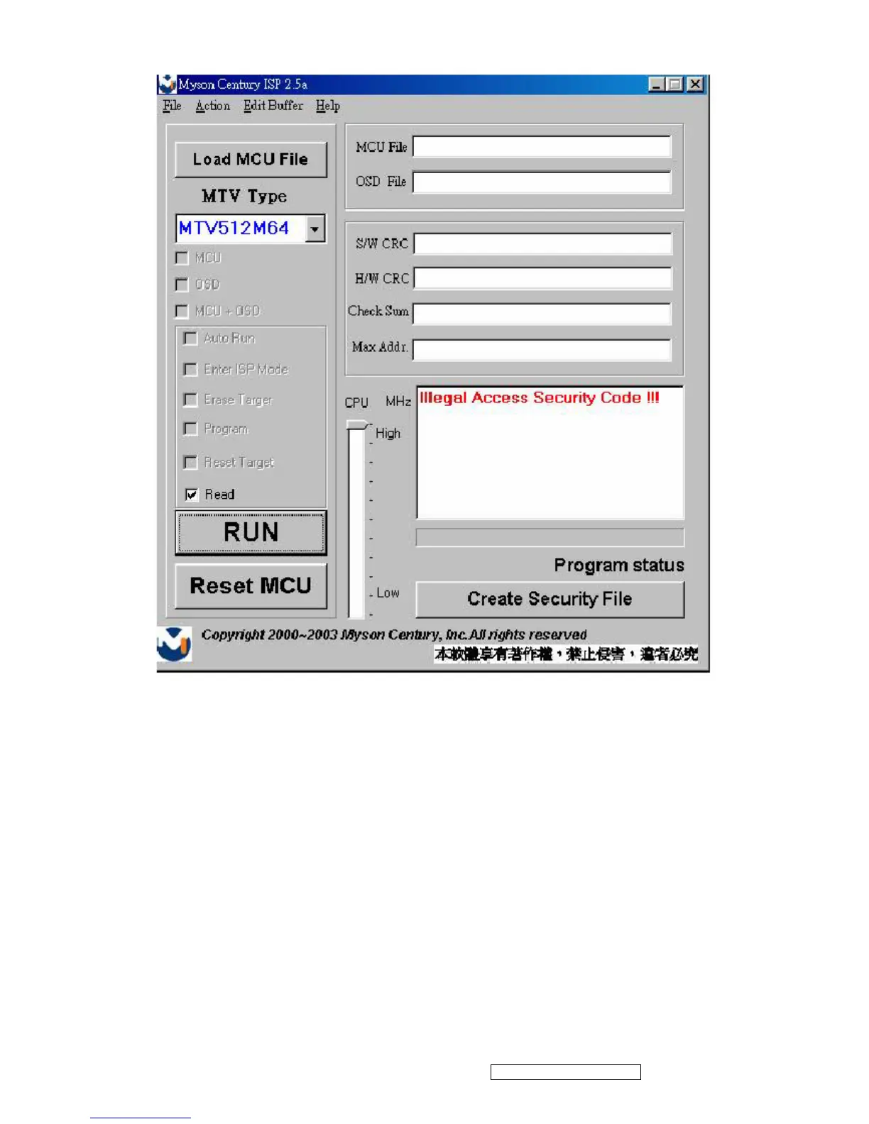5.2 If user uses hardware ISP to read MCU content, it shows as Fig 5.2.