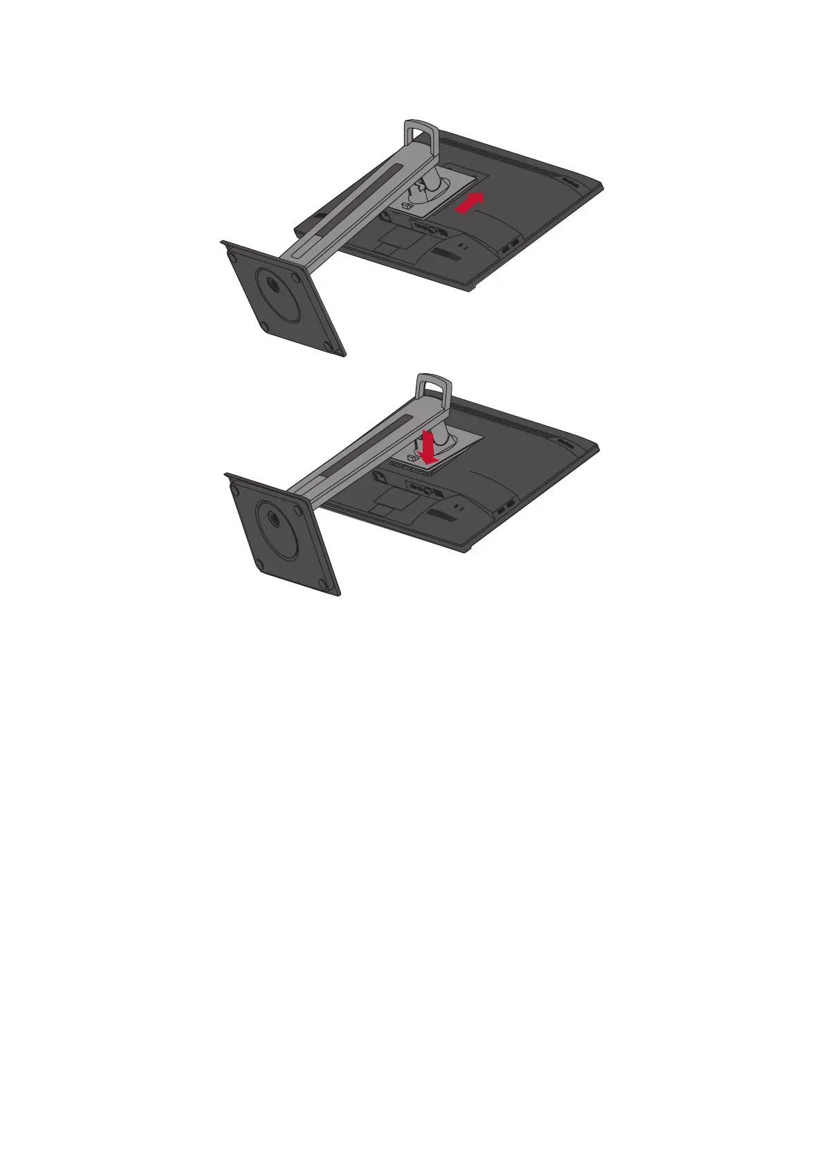 4. Align and slide the upper hooks of the monitor stand into the stand mounng