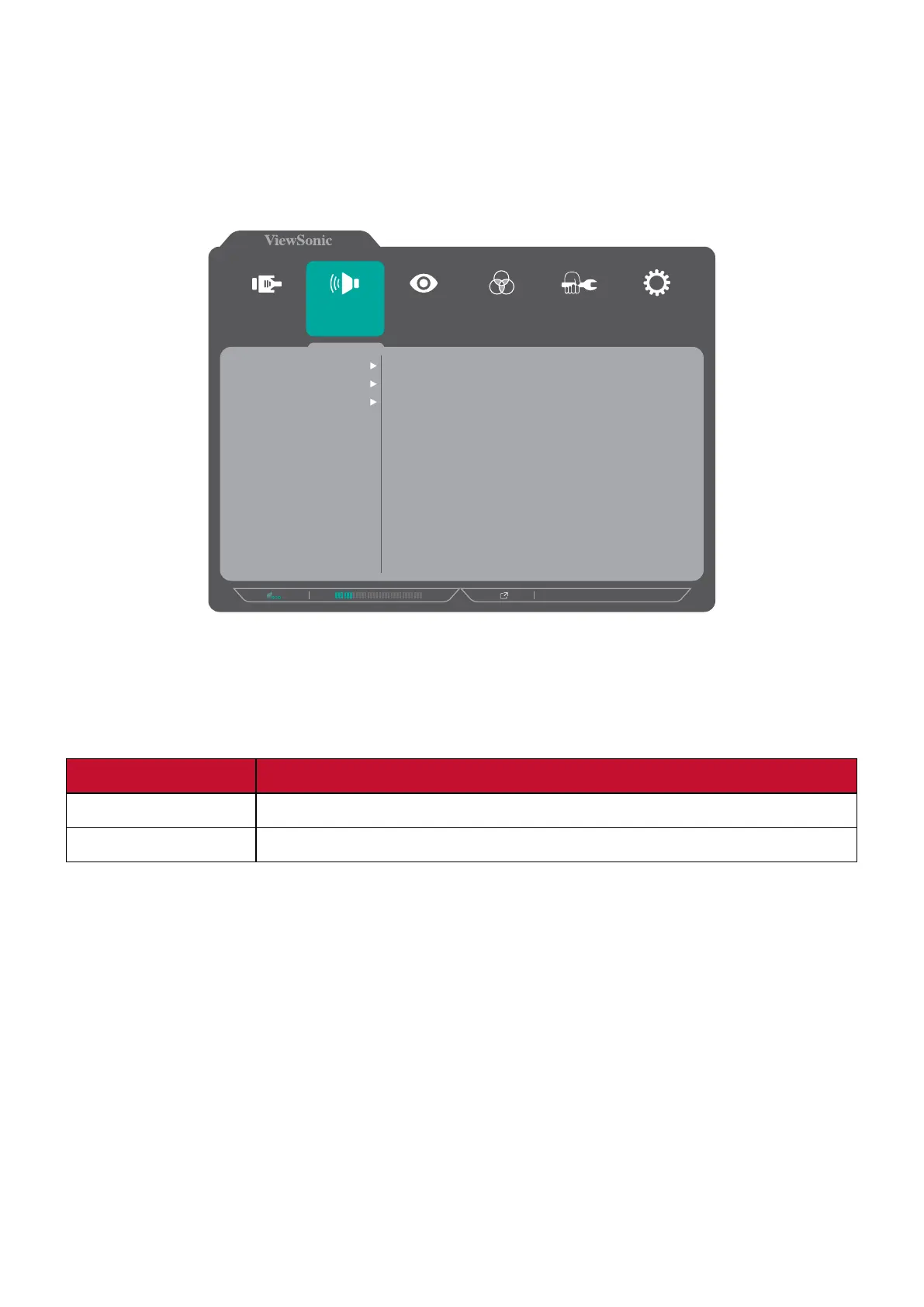 2. Press the 1(ViewMode) or 2 key to select Audio Adjust. Then press the 3 key to