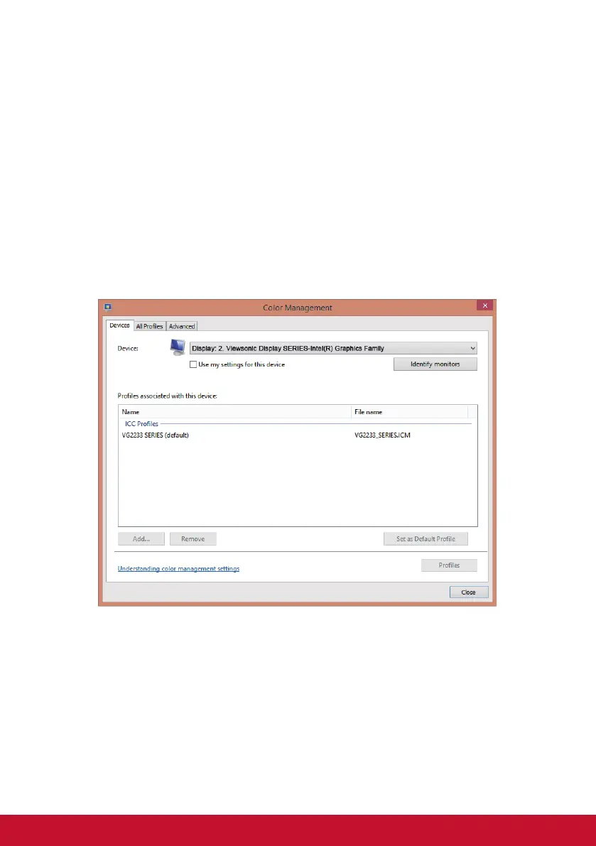 recognized by your PC in the ‘Color Management’ section of your