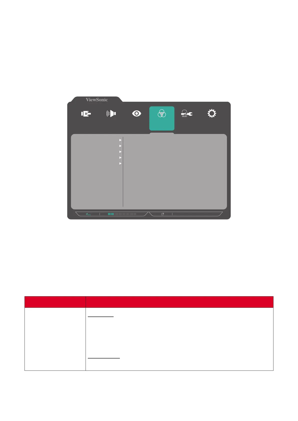 2. Press the 1(ViewMode) or 2 key to select Color Adjust. Then press the 3 key to