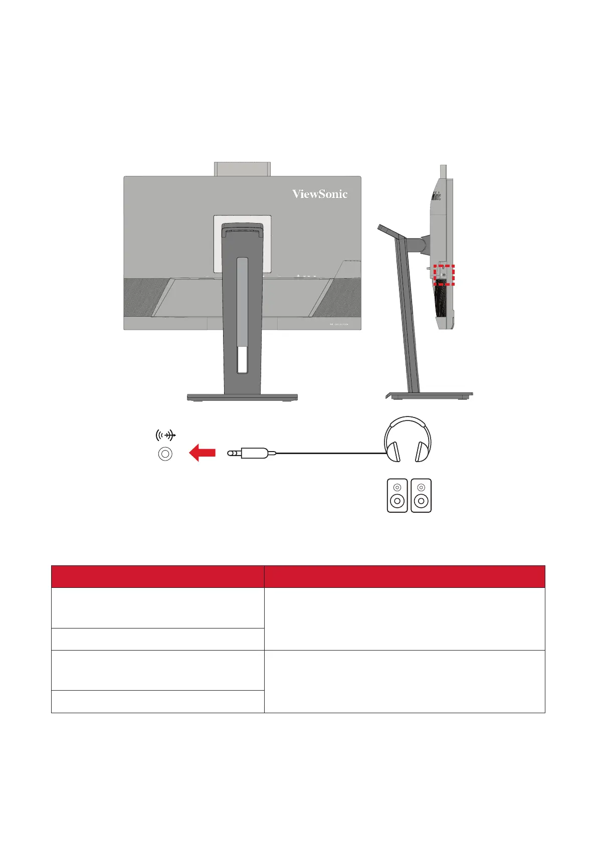 Plug the audio jack of the ear-/headphones into the Audio Out port of the monitor.