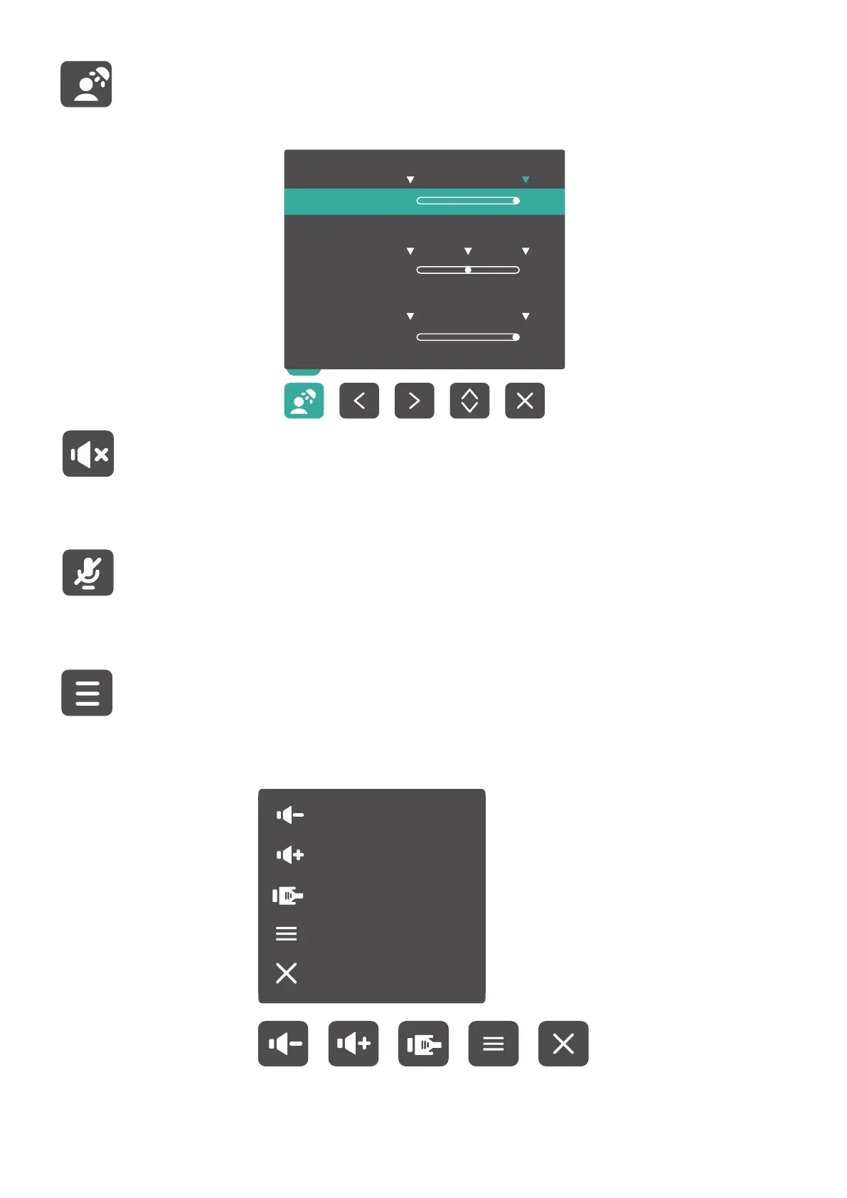 Press the 5 key to decrease/increase the Volume level, adjust the LED Fill Light, and