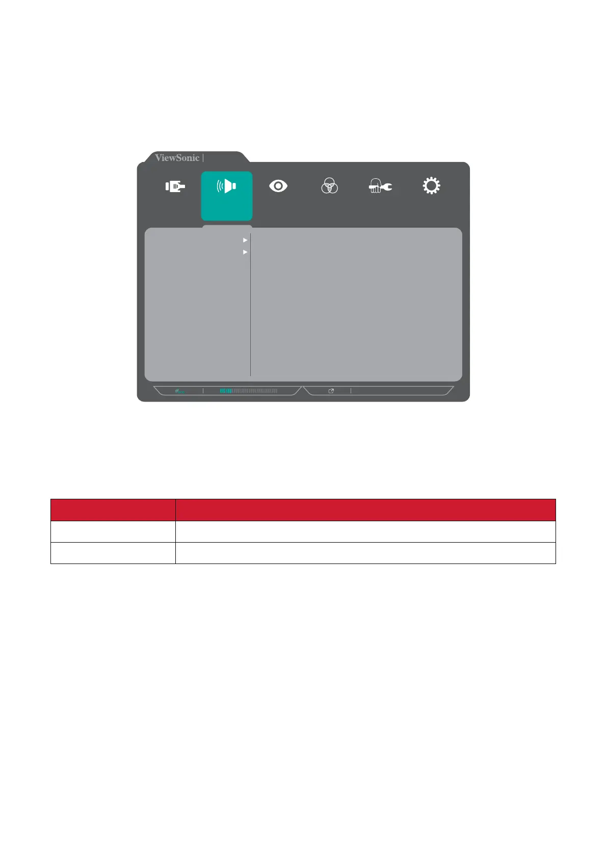 2. Press the 1 (ViewMode) or 2 key to select Audio Adjust. Then press the 3 key to