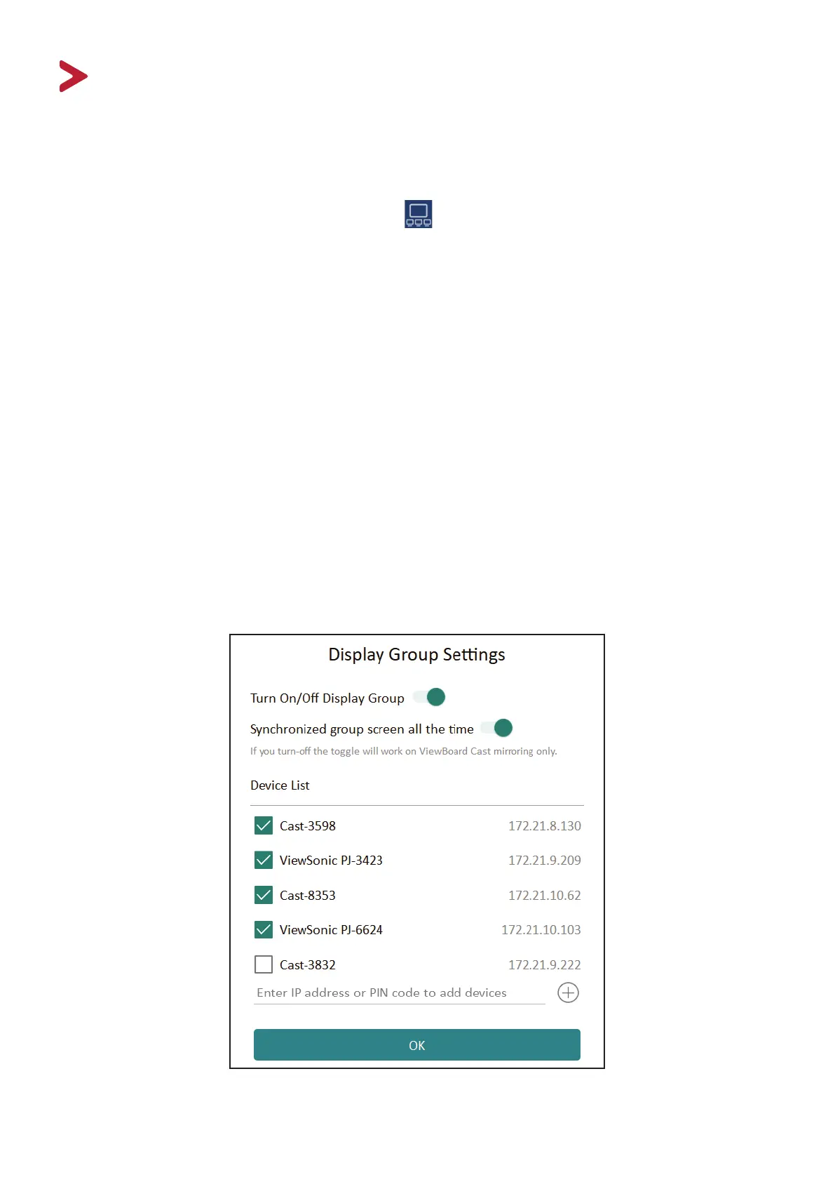 2. Next, select the devices you want to join in the display group and click “OK” to
