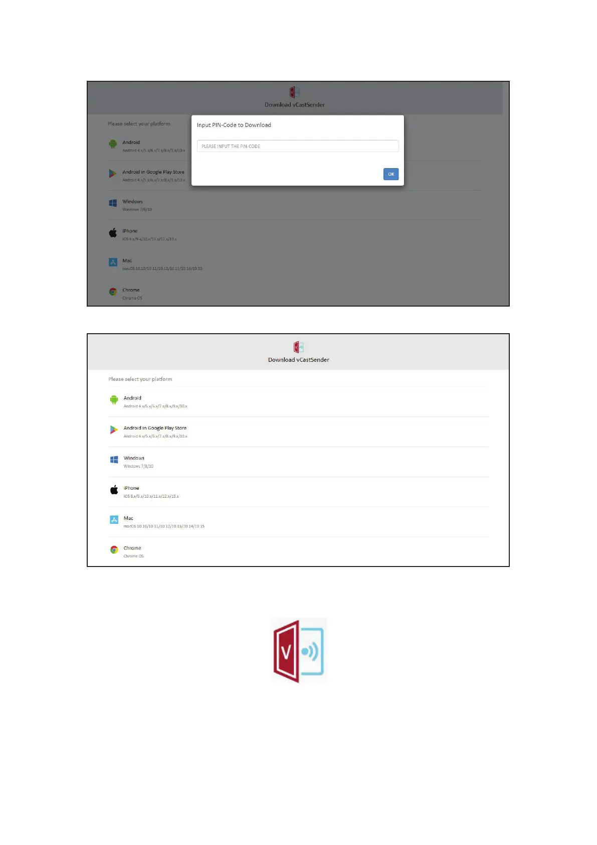 4. Once the client device has installed vCastSender the app can be launched.